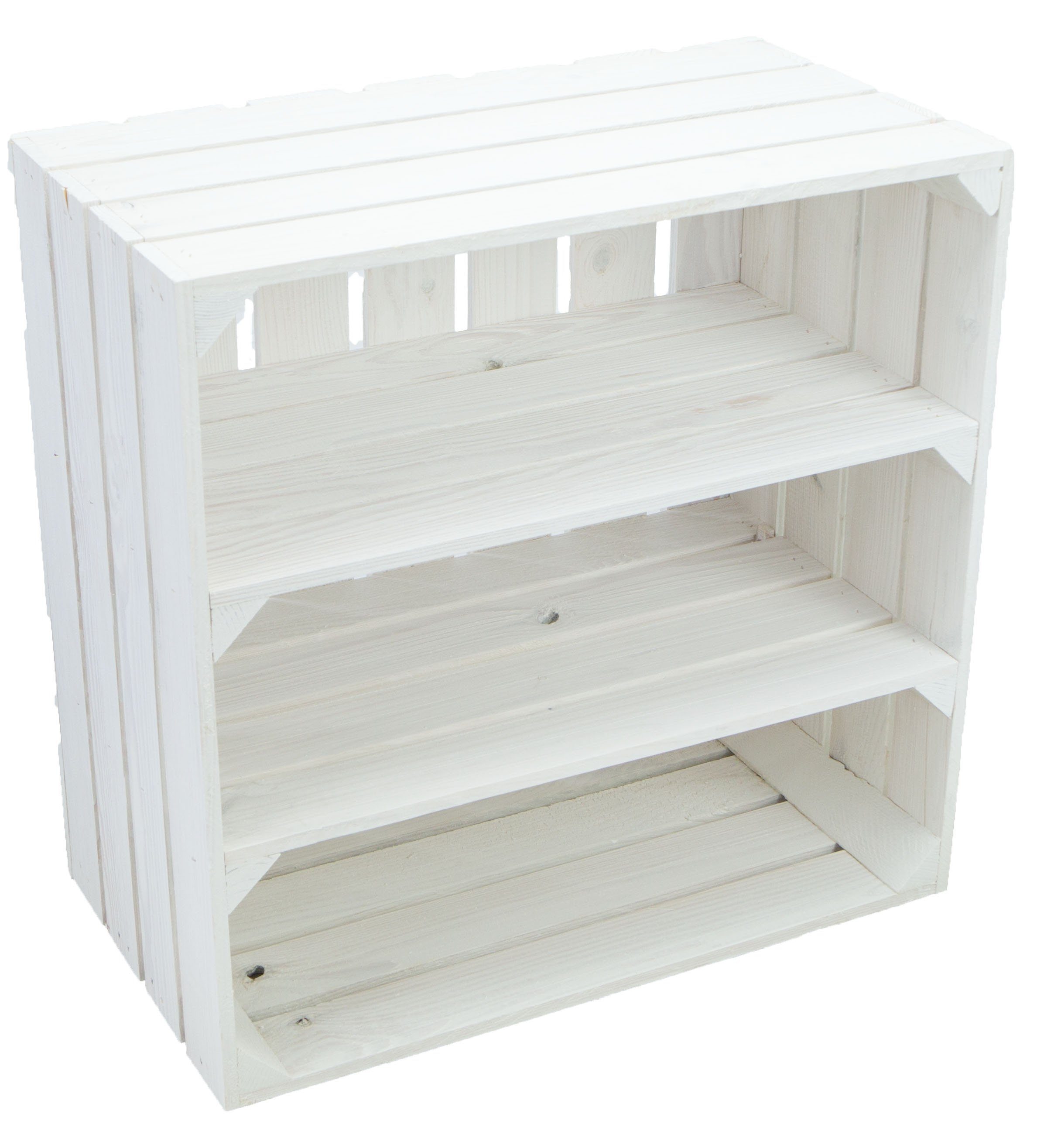 Schöne weiße Obstkiste "Tamme" mit zwei Einlegeböden.