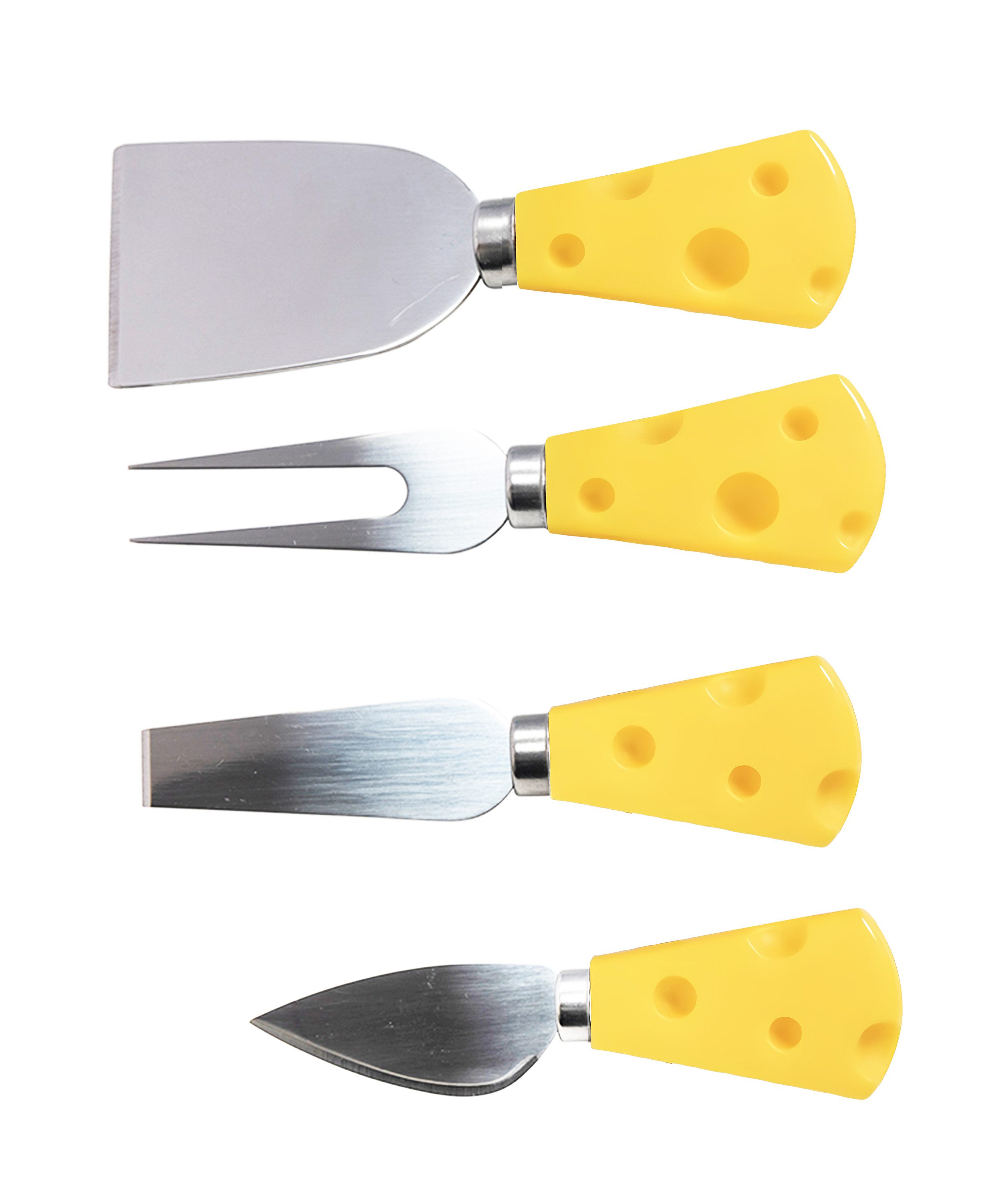 Highlights: 4 verschiedene Messer für unterschiedliche Käsesorten Originelle Griffe in Form von Käsestücken – ein echter Hingucker Robuste, rostfreie Edelstahlklingen Ergonomisch geformte Griffe für sicheren Halt Ideal für Partys, Weinabende oder als Geschenkidee