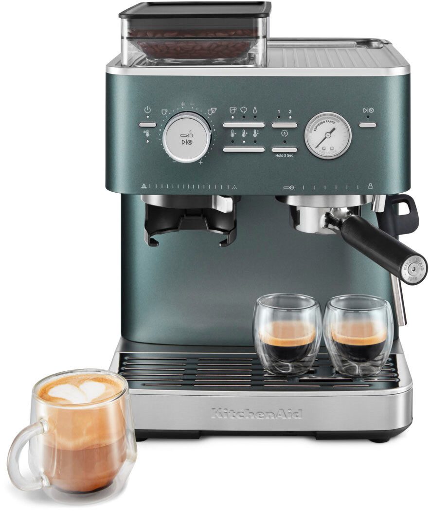 Впередe Vorteile | 58-mm-Siebträger mit flachem Boden und Tamper mit hochwertiger Edelstahl-Unterseite Mit eingelassenen Ausläufen ausgestattet um eine flache Unterseite zu schaffen die im Vergleich zu herkömmlichen Espresso-Siebträgern für den privaten Gebrauch ein einfacheres gleichmäßiges und zuverlässiges Tampen ermöglichen. So erhalten Sie jedes Mal perfekten aromatischen Geschmack und eine vollmundige Crema. Spülmaschinenfest. Abnehmbarer Bohnenbehälter mit Deckel KESRBHS Einfach drehen und anheben um den 225 g-Bohnenbehälter zu leeren ihn wieder mit frischen Bohnen zu füllen oder die Bohnen zu wechseln. Auch als optionales Zubehör erhältlich. Erzeugt die ideale Menge und Konsistenz für eine oder zwei Tassen Espresso Extra großer Wassertank (2 5 Liter) mit Griff und Deckel Mit einer einzigen Füllung können Sie bis zu 33 Tassen Espresso* oder auch größere Getränke zubereiten ohne häufig Wasser nachfüllen zu müssen. Fast-Heating-Technologie programmierbare Wassertemperatur und leicht wählbare Temperatureinstellungen Ohne Wartezeit bereit zum Brühen Programmieren Sie die Wassertemperatur und passen Sie sie an Ihren persönlichen Geschmack und/oder Ihr Getränk an Intelligente Dosiertechnologie oder manuelle Dosierung Kaffeepulver-Vorinfusion und italienische Pumpe mit 15 bar Beim Vorbrühen wird vor dem Brühvorgang automatisch eine kleine Menge Wasser zum Kaffeepulver gegeben Die 15-bar-Pumpe liefert den perfekten Wasserdruck der während des Brühvorgangs benötigt wird Für einen vollmundigen aromatischen Espresso Kein Rätselraten mehr, wenn es um den perfekten Mahlgrad geht Passt die gewünschte Menge an Kaffeepulver exakt manuell an |
