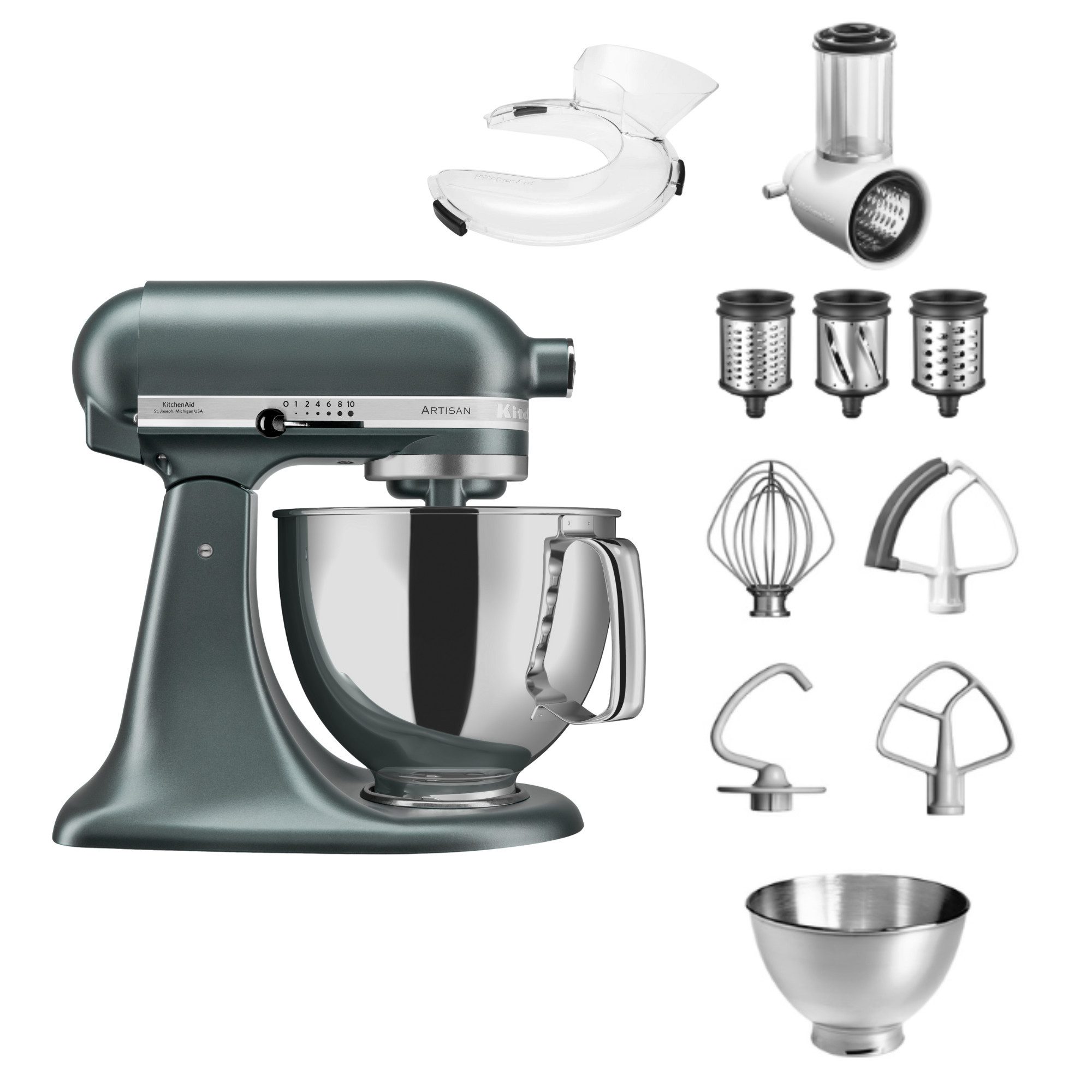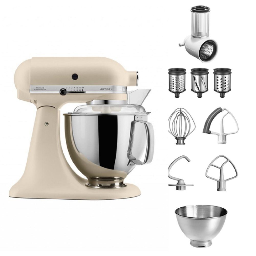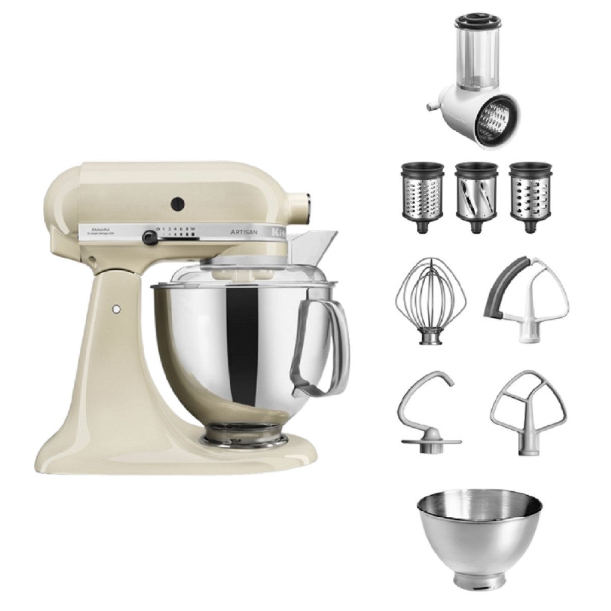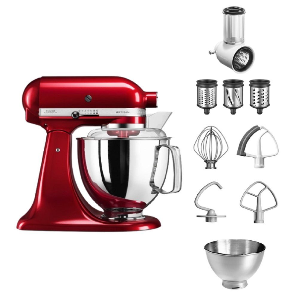 Leben Sie Ihre Kreativität mit dem KitchenAid Premiummodell Artisan 5KSM175PSE als ultimative Kochhilfe aus. Die Küchenmaschine lässt schon viele Herzen höher schlagen. Mit diesem Beginnerset erhalten sie neben der KitchenAid Artisan 5KSM175PSE inkl. einer 4,8 Liter Edelstahlschüssel mit Handgriff, eine 3,0 Liter Edelstahlschüssel ohne Griff, Spritzschutz, Flachrührer, Knethaken, Schneebesen, Flexibler Flachrührer, noch zusätzlich einen Gemüseschneider (5KSMVSA).