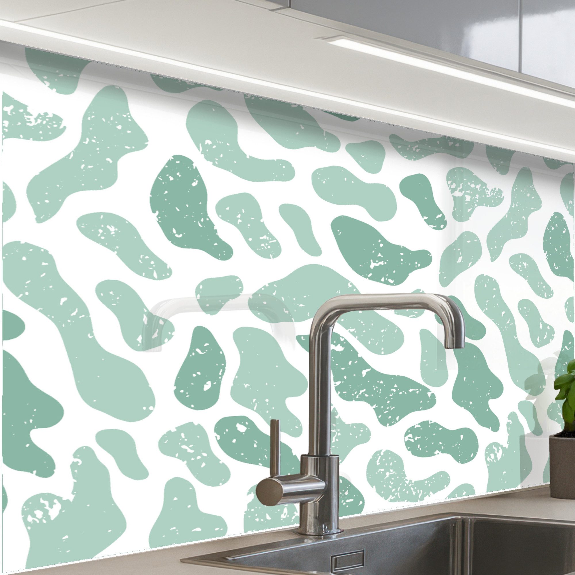 Die Küchenrückwand besteht aus strapazierfähigem, PVC-freiem Material, das hitzebeständig, wasserabweisend und UV-beständig ist. Die Glasoptik sorgt für einen modernen und eleganten Look, ohne die Bruchgefahr von echtem Glas.
