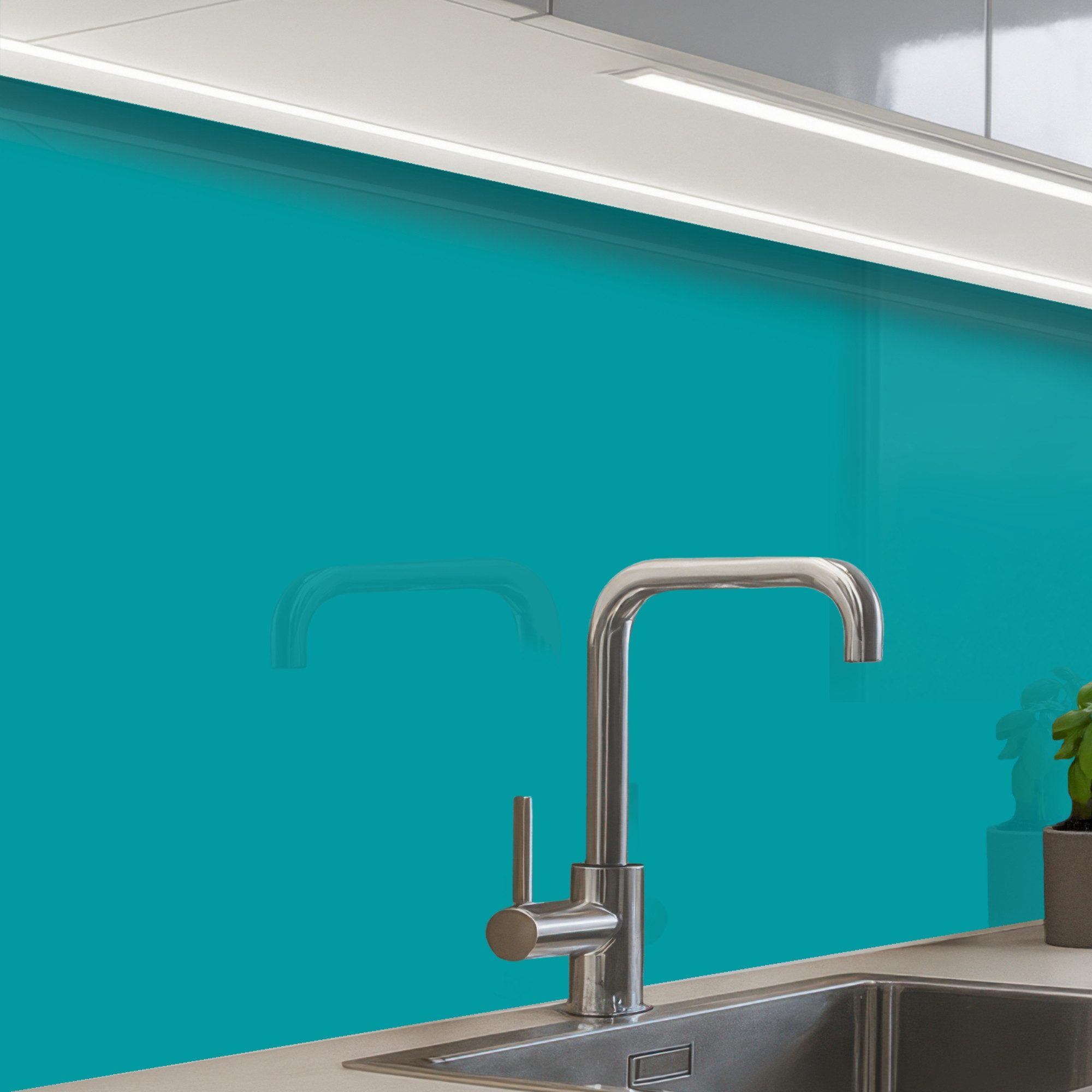 Die Küchenrückwand besteht aus strapazierfähigem, PVC-freiem Material, das hitzebeständig, wasserabweisend und UV-beständig ist. Die Glasoptik sorgt für einen modernen und eleganten Look, ohne die Bruchgefahr von echtem Glas.