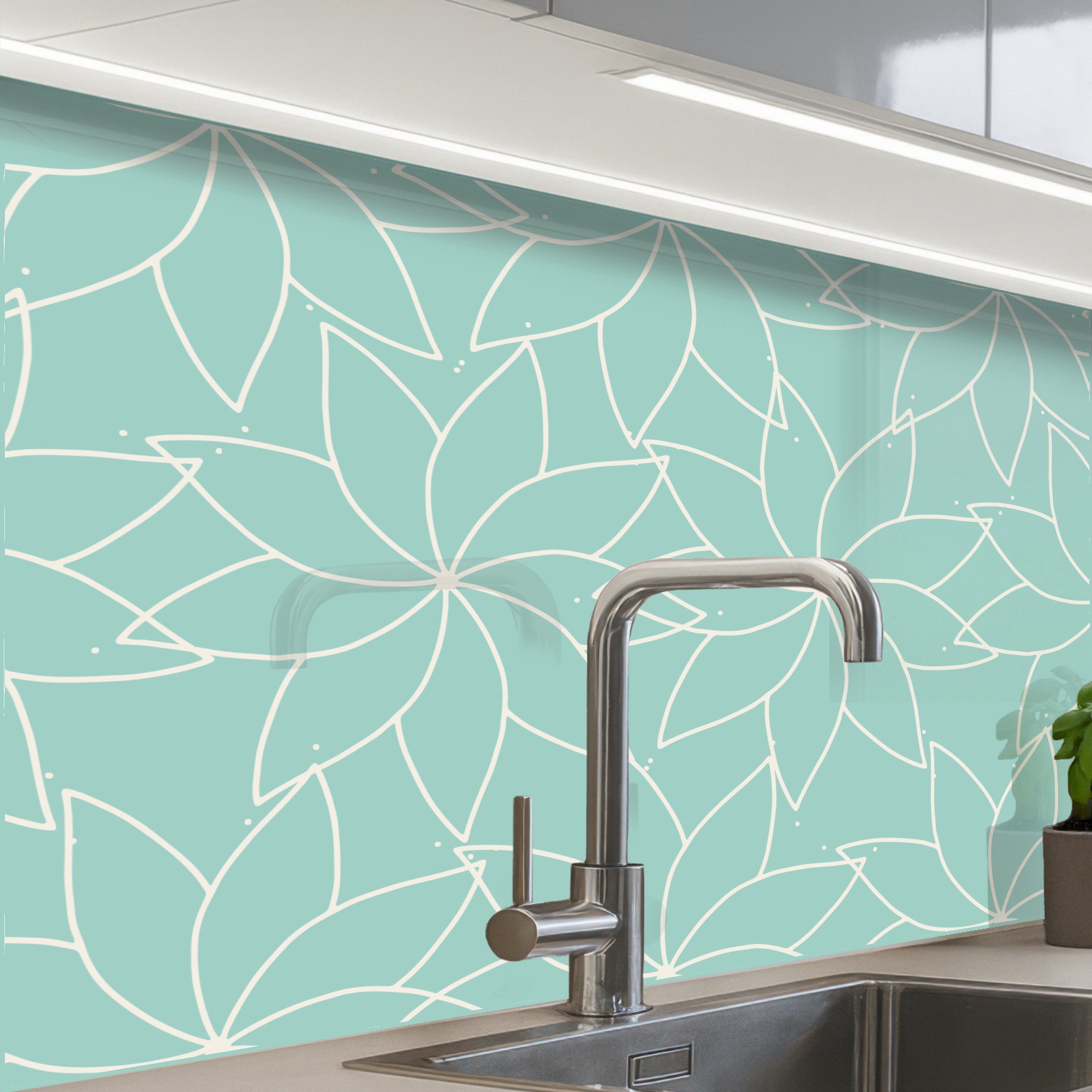 Diese Küchenrückwand fügt sich in moderne, klassische und minimalistische Stile ein und wertet Ihre Küche sofort auf. Sie ist auf Fliesen, Putz und gestrichenen Wänden problemlos einsetzbar.
