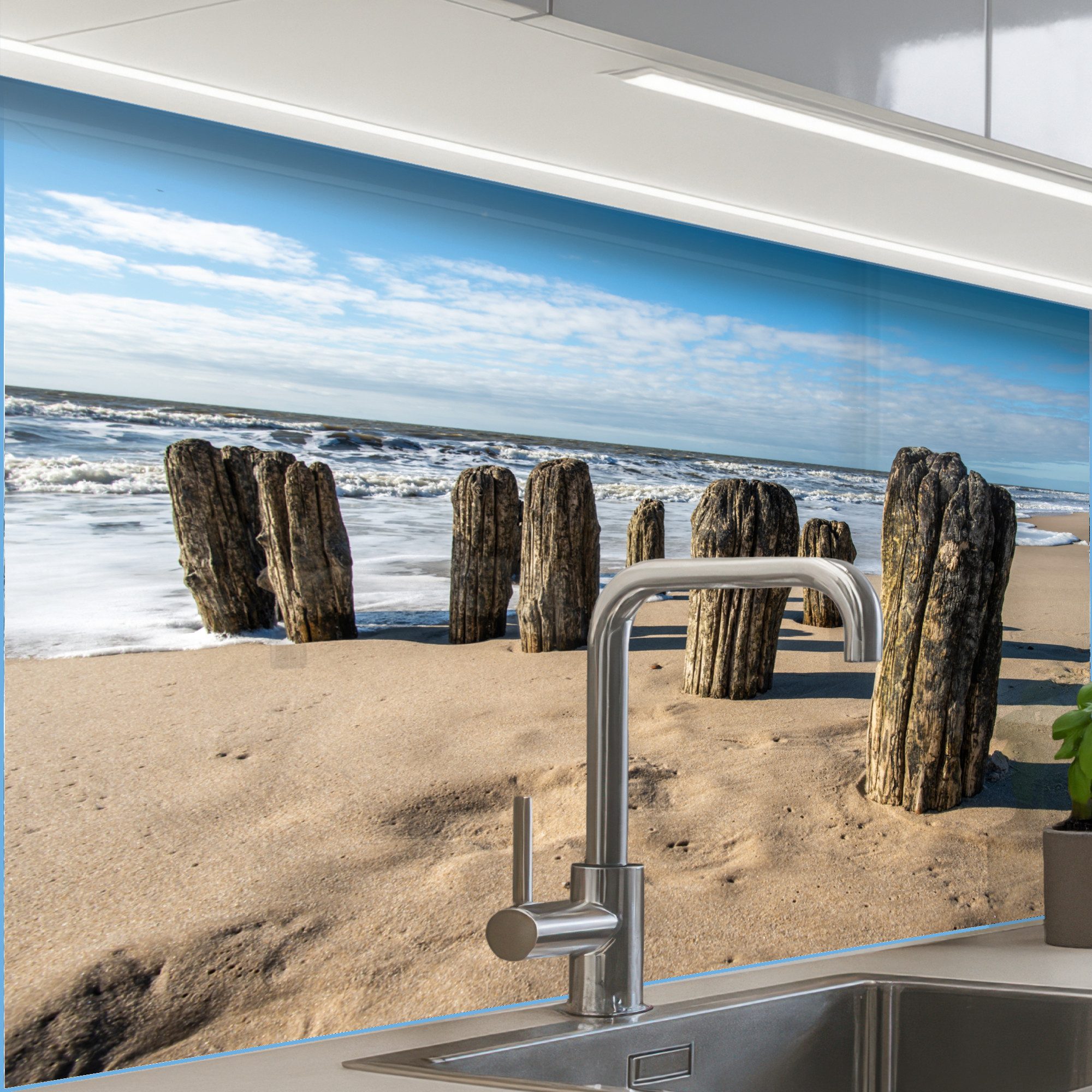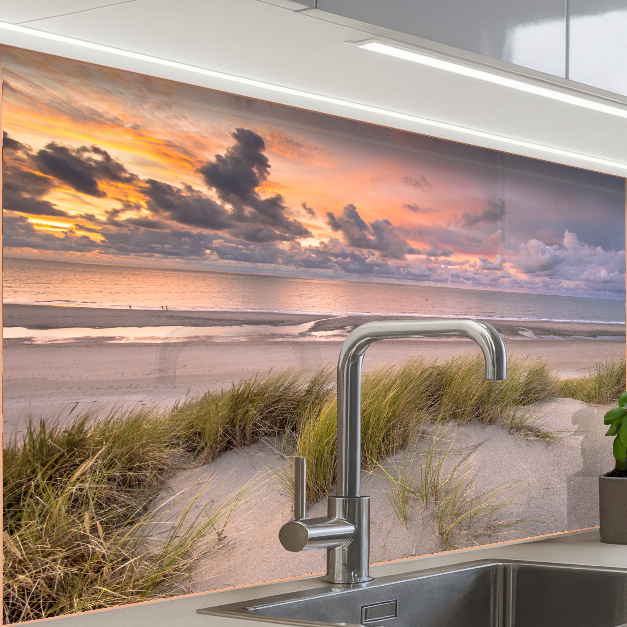 Die Küchenrückwand besteht aus strapazierfähigem, PVC-freiem Material, das hitzebeständig, wasserabweisend und UV-beständig ist. Die Glasoptik sorgt für einen modernen und eleganten Look, ohne die Bruchgefahr von echtem Glas.
