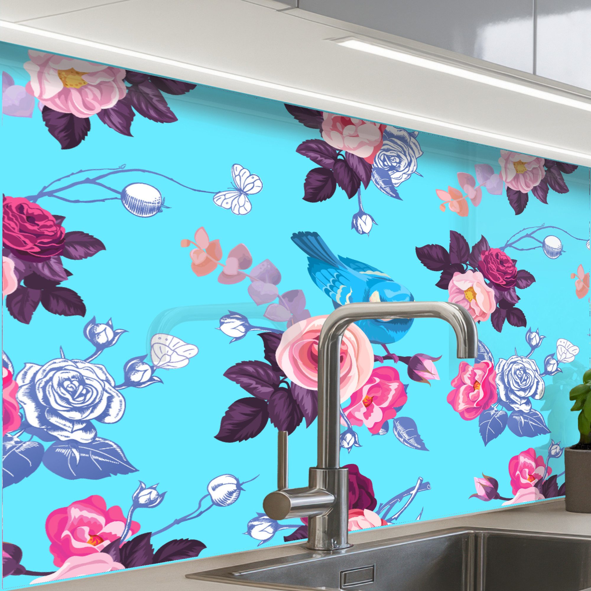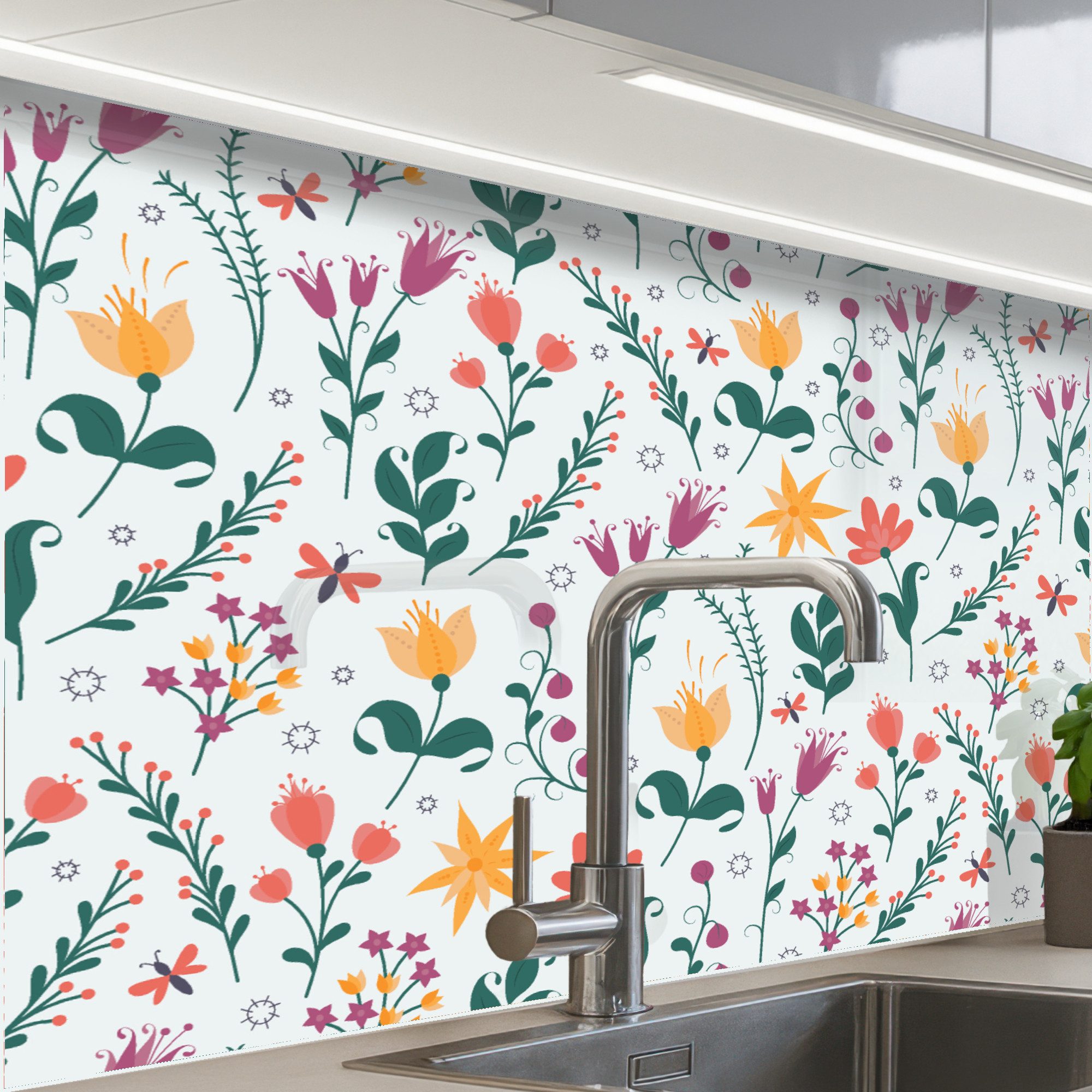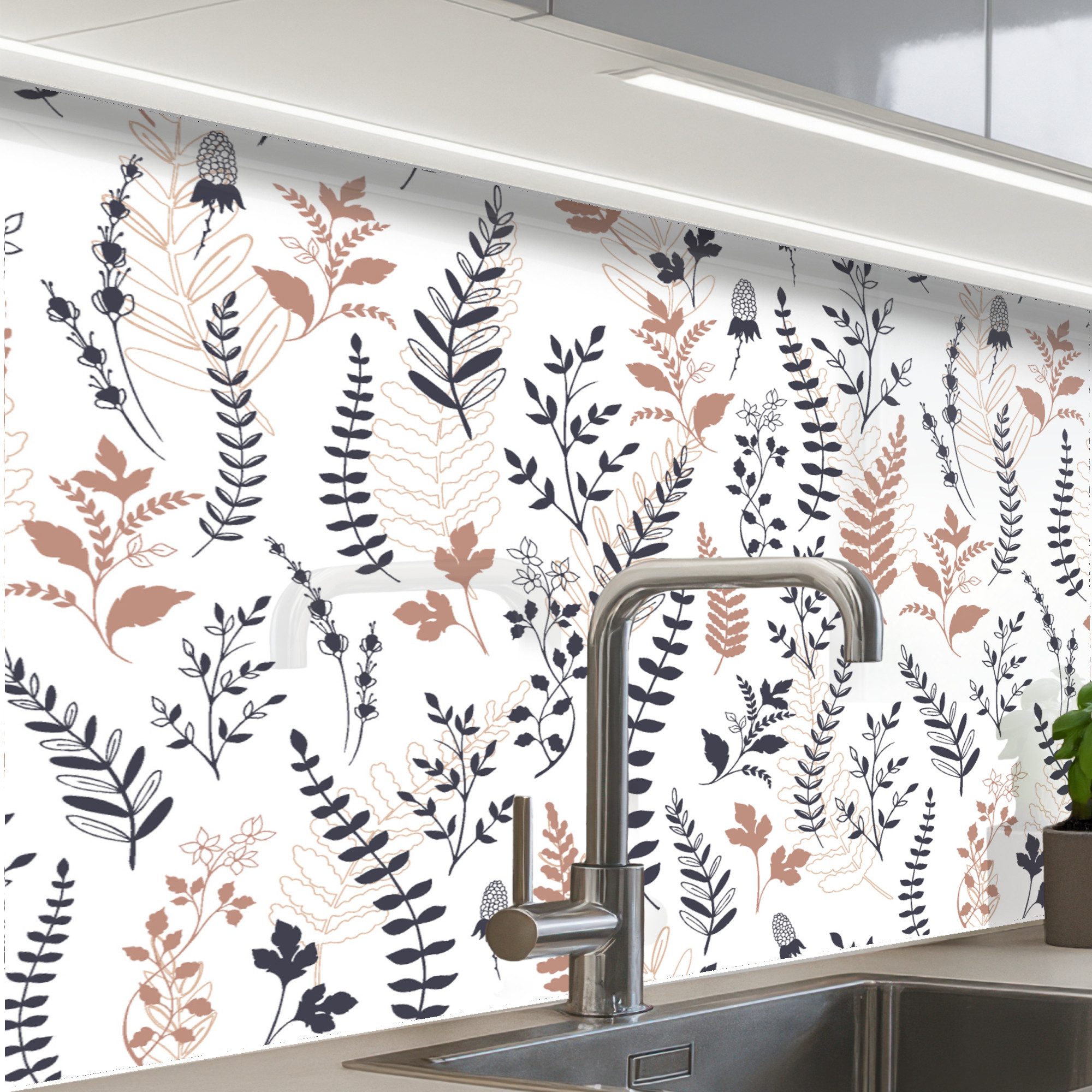 Diese Küchenrückwand fügt sich in moderne, klassische und minimalistische Stile ein und wertet Ihre Küche sofort auf. Sie ist auf Fliesen, Putz und gestrichenen Wänden problemlos einsetzbar.