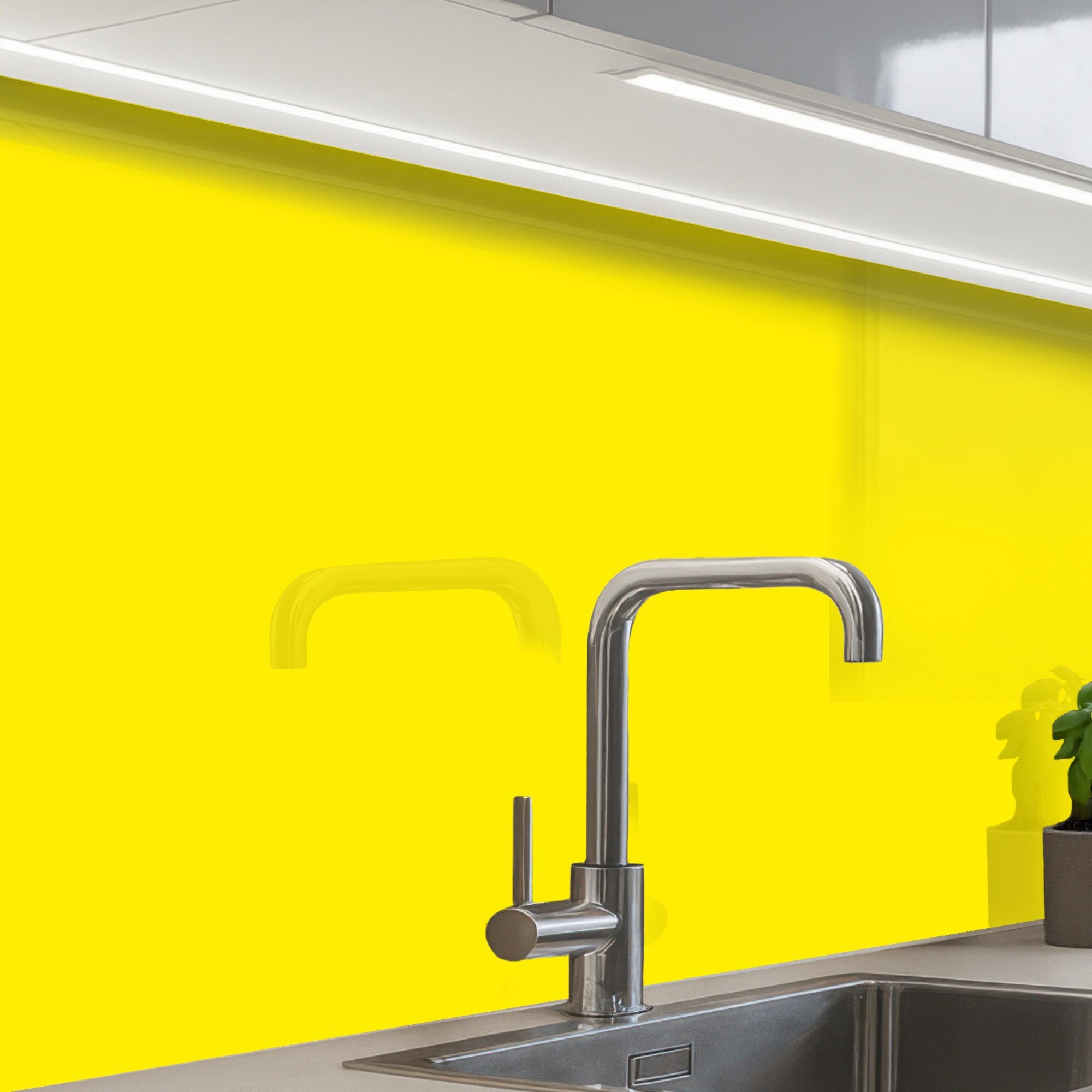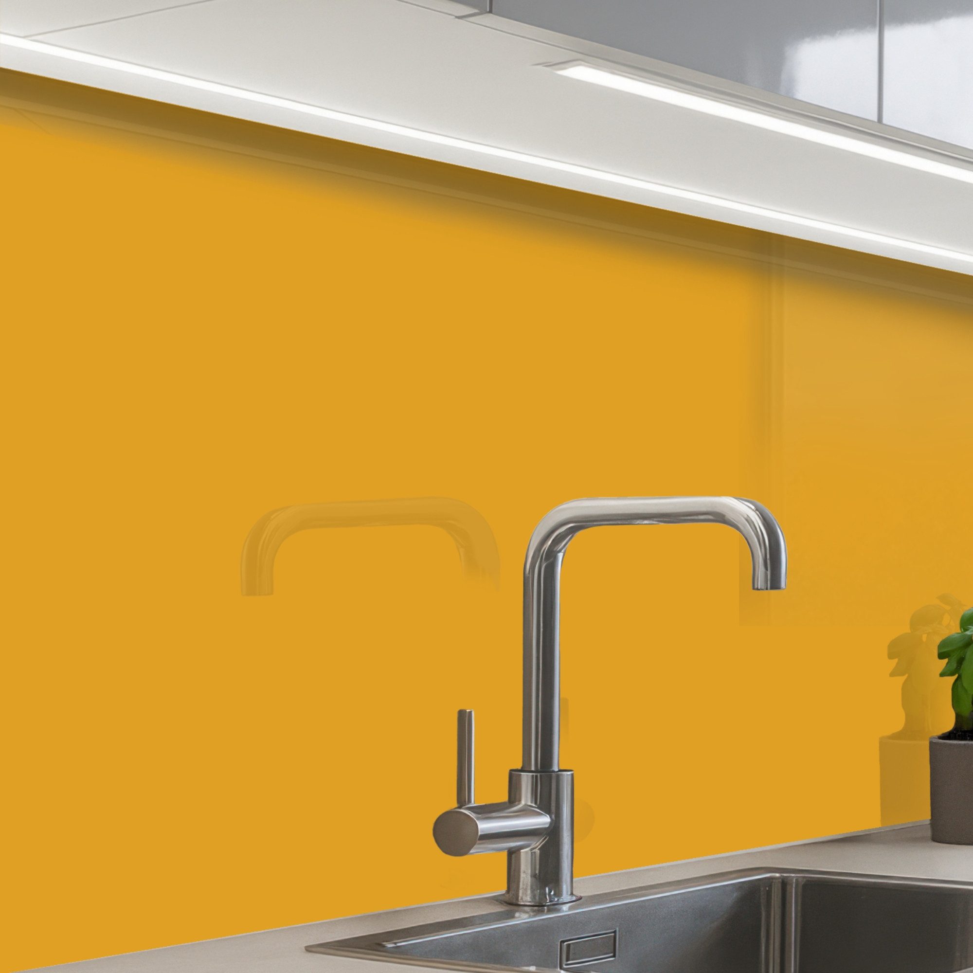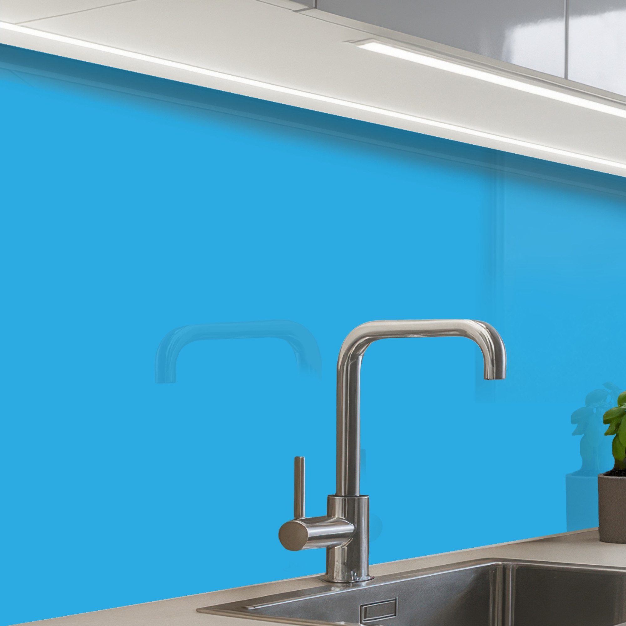 Die Küchenrückwand besteht aus strapazierfähigem, PVC-freiem Material, das hitzebeständig, wasserabweisend und UV-beständig ist. Die Glasoptik sorgt für einen modernen und eleganten Look, ohne die Bruchgefahr von echtem Glas.
