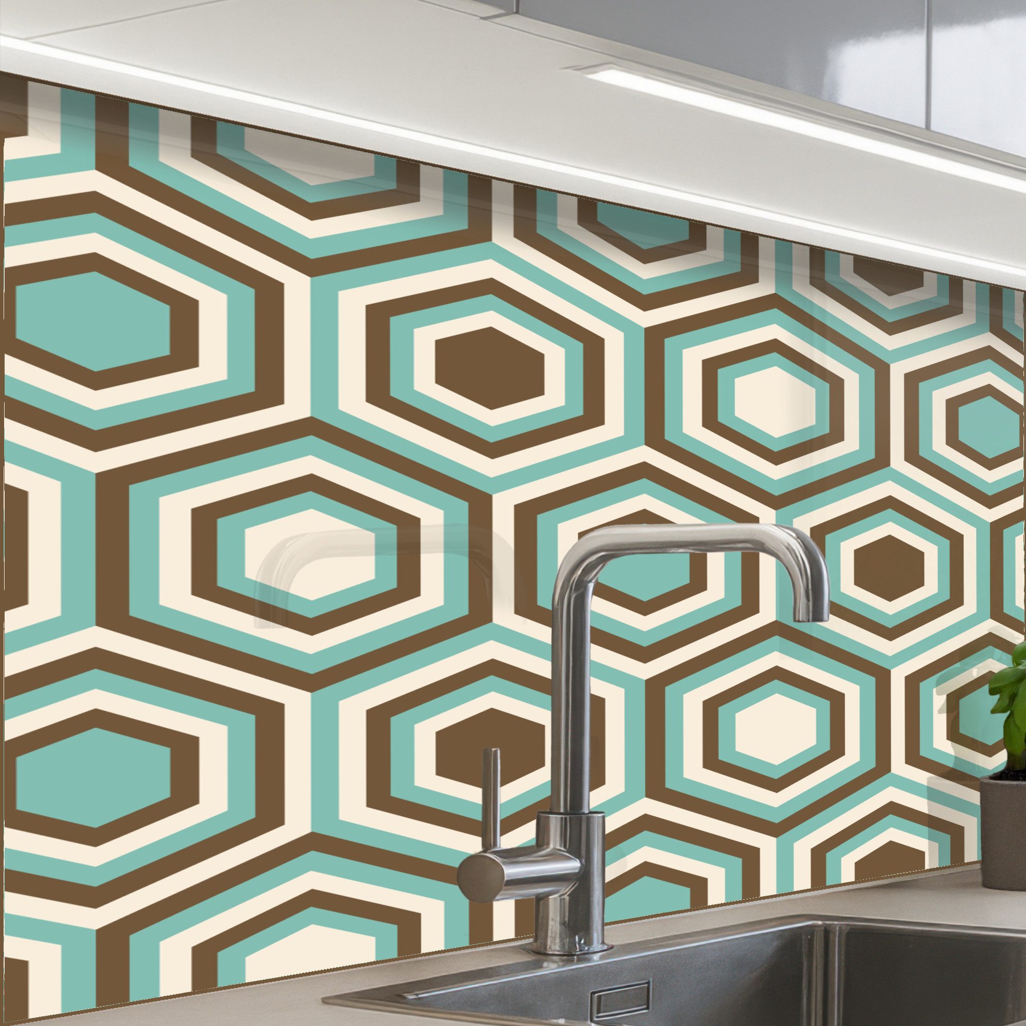 Diese Küchenrückwand fügt sich in moderne, klassische und minimalistische Stile ein und wertet Ihre Küche sofort auf. Sie ist auf Fliesen, Putz und gestrichenen Wänden problemlos einsetzbar.