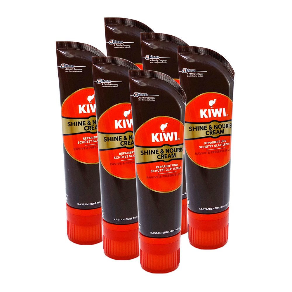 KIWI Shine & Nourish Cream Lederpflege (Farbton: Kastanienbraun) ist eine hochwertige Creme, die wie eine Versiegelung wirkt und dabei Glattleder nährt, schützt, Farben belebt und Glanz verleiht. In der Tube befindet sich ein praktischer Applikator-Schwamm zum einfachen Auftragen der Creme auf die Schuhe. Sie wird mit einer speziellen Wachsmischung hergestellt, damit die Schuhe länger wie neu aussehen. Die Schuhcreme bietet nachweislich einen lang anhaltenden Wasserschutz.