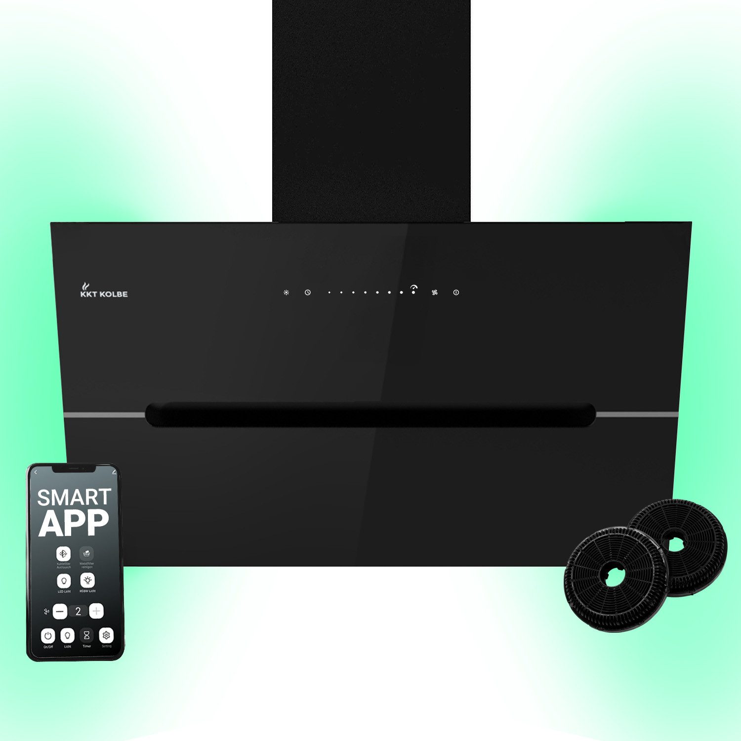 Top-Features | Kopffreihaube / 80cm / Schwarz / Glas / WIFI / 9 Stufen / RGBW-LED-Beleuchtung / TouchSelect Sensortasten |