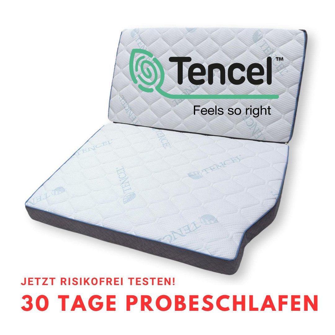 Eigenschaften Matratzenbezug | hochwertiger Matratzenbezug Tencel® komibiniert mit robusten Alcantara Polsterstoff abnehmbarer und waschbarer hohe Luftdurchlässigkeit und ein guter Feuchtigkeitsaustausch sowie eine hervorragende Wärmeableitung atmungsaktives MatratzenLAB® Air System |