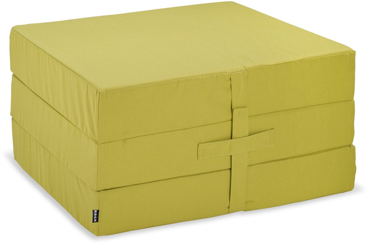 Die Klappmatratzen der Serie Classic Uni lassen sich mit wenigen Handgriffen platzsparend und einfach aufbauen. Ausgeklappt ist sie ein ideales bequemes Gästebett, und geklappt perfekt als Beistelltisch oder Hocker nutzbar. Mithilfe des angebrachten Tragegriffs lässt sie sich leicht transportieren und kann überall mit hingenommen werden. Der Bezug ist lichtecht, wasser- und schmutzabweisend sowie mit Fleckschutz versehen und daher für In- und Outdoor geeignet. Der Artikel wird ohne Kissen, dafür mit einer vor Staub schützenden Abdeckhülle geliefert!