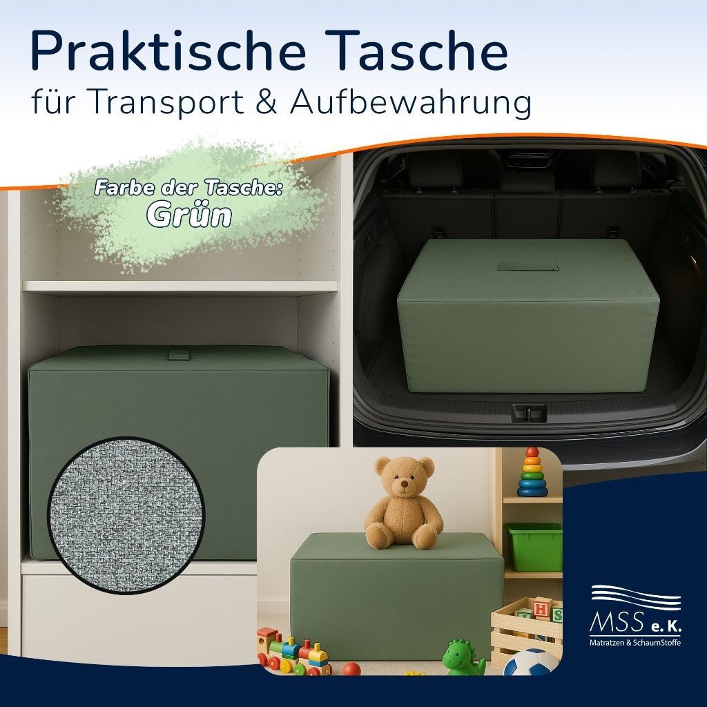 Der strapazierfähige Bezug aus Polyester ist mit einem Reißverschluss versehen und lässt sich einfach bei 30 °C in der Waschmaschine reinigen – hygienisch und pflegeleicht. Optional ist eine passende Tragetasche in mehreren Farben erhältlich, die das Transportieren und Aufbewahren zusätzlich erleichtert.