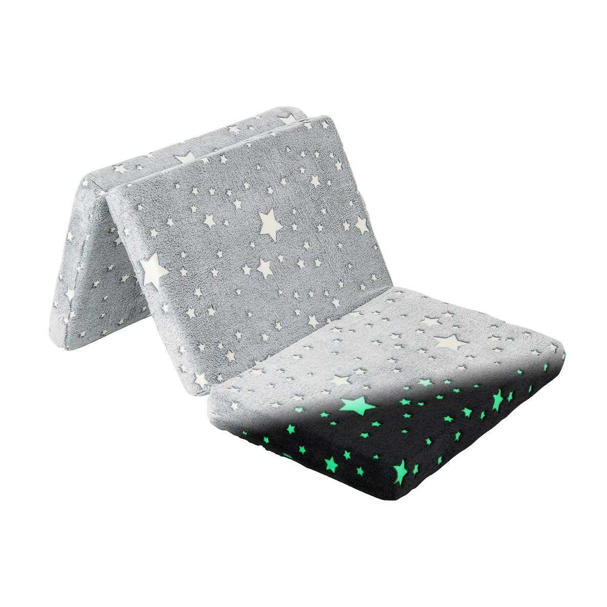 Die faltbare Bodenmatratze für Kinder bringt Ihrem Kind nächtlichen Lichtspaß. Sobald die Matte ihre Form wiedererlangt hat, eignet sie sich perfekt als Spielmatte oder kleines Sofa im Kinderzimmer oder in der Krippe. Der weiche, hautfreundliche Flanellbezug ist für Kinder immer angenehm, und der hochdichte Schwamm bietet starken Halt. Legen Sie die Matte einfach eine halbe Stunde bis eine Stunde in helles Licht oder in die Sonne, und schon können Sie nachts die leuchtenden Sterne genießen. Eine Tragetasche trägt zum leichten Transport und schützt vor Staub und Feuchtigkeit.