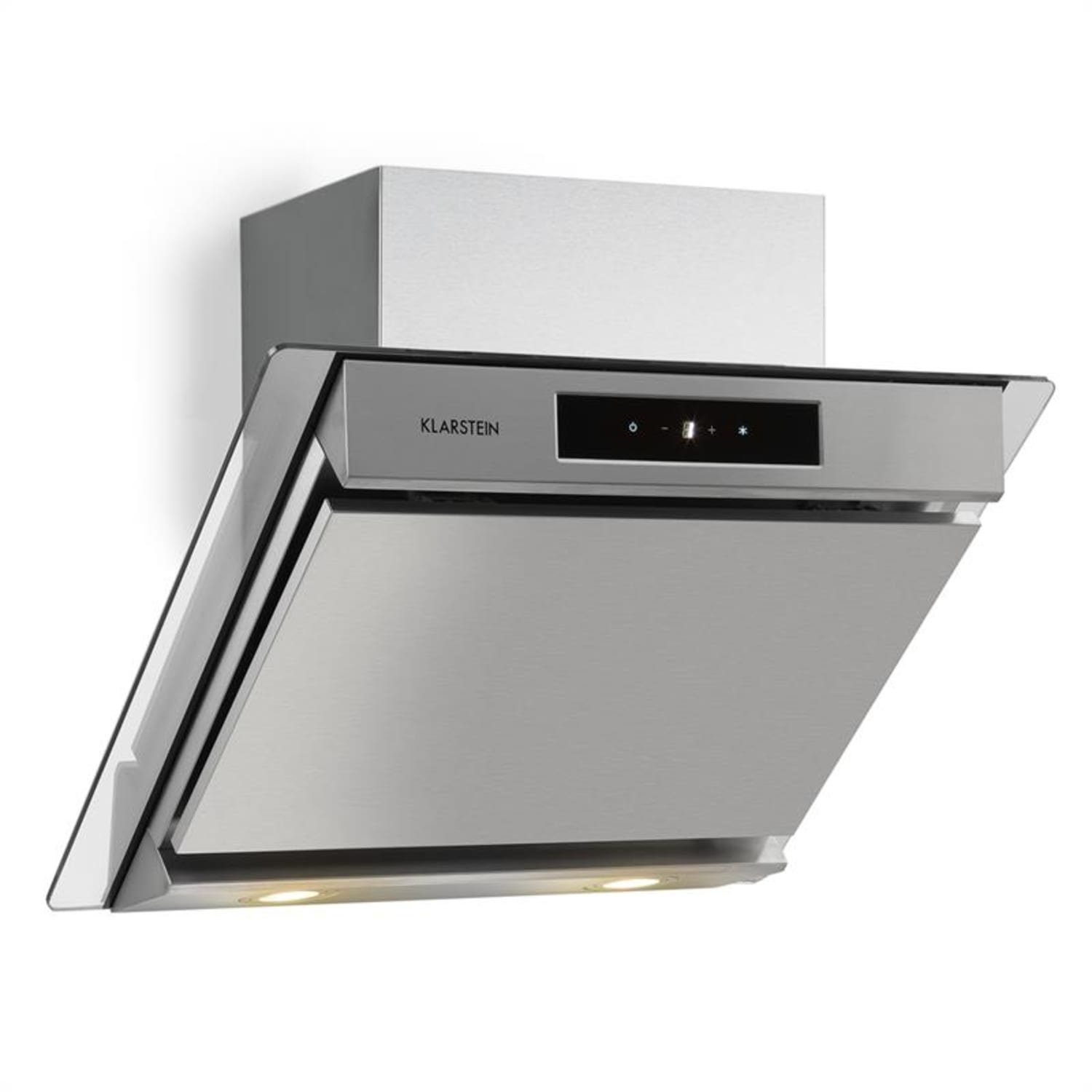 Die Klarstein Balzac 60 Dunstabzugshaube sorgt mit 210 W Motorleistung im Umluftbetrieb für Dunstfreie Luft in kleinen bis mittleren Küchen. Drei Leistungsstufen liefern bis zu 610 m³ Abluftleistung in der Stunde und passen die kopffreie Wandabzugshaube dem jeweiligen Kochaufkommen gezielt an. Besonders praktisch ist die nach oben aufstrebende Konstruktion der 60 cm breiten Haube, die dem Kopf die nötige Bewegungsfreiheit beim Kochen verleiht. Dabei benötigt die Ablufthaube in der Tiefe kaum Platz. Per frontseitiger Bediensektion werden Lüftung und Beleuchtung angesteuert. Ein Quicktimer lüftet unkompliziert für 5 Minuten nach und schaltet das Gerät danach ab. Gesteuert wird die edle Haube ganz unkompliziert über ein Touchbedienfeld mit Digitalanzeige. Ein zuschaltbares Licht mit 2 x 1,5 W LED-Lampen sorgt für gute Sichtverhältnisse am Herd.