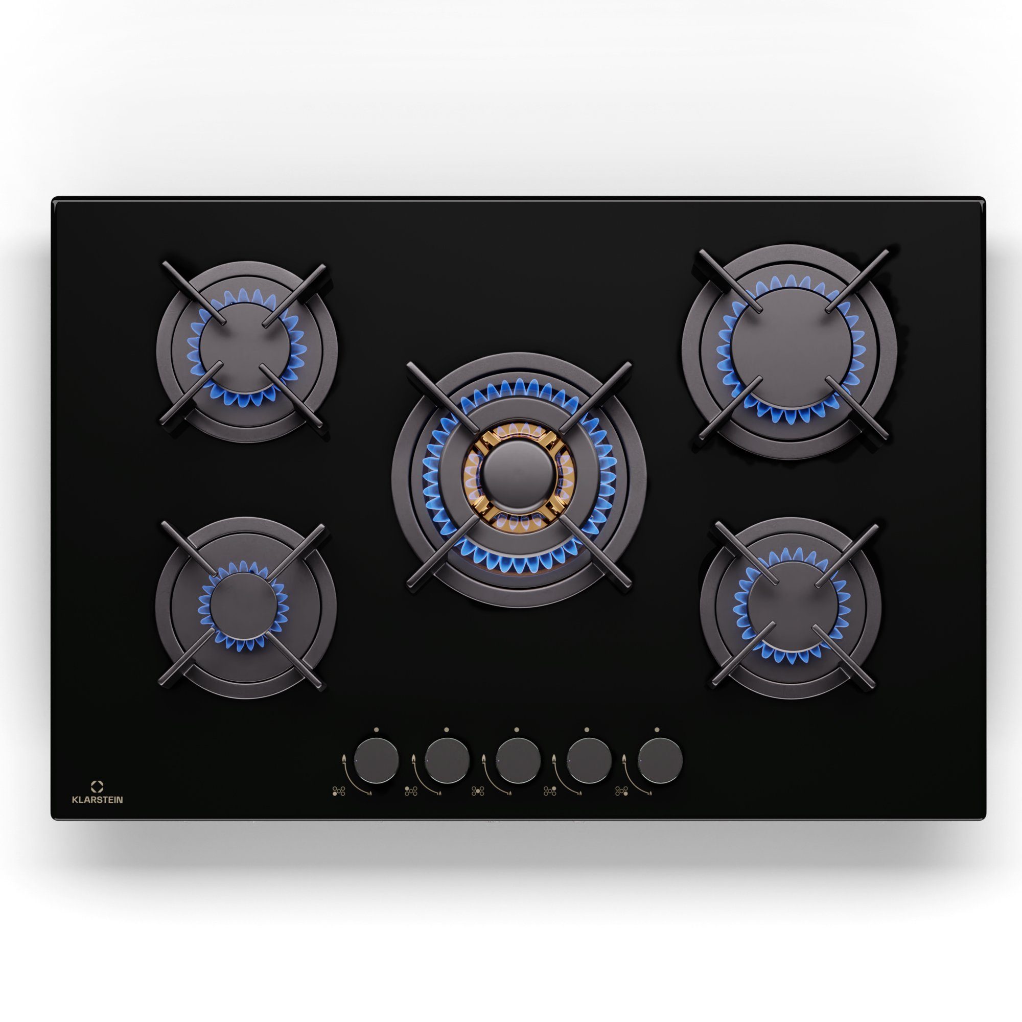 Für anspruchsvolle Köche präsentiert Klarstein das Goldflame 5 Gaskochfeld, das die Vorzüge des Gaskochens mit Effizienz, Kontrollierbarkeit und Umweltfreundlichkeit vereint. Mit fünf hochwertigen Messing-Brennern (3,4 kW, 2,4 kW, 2 x 1,8 kW, 1,0 kW) bietet das platzsparende Kochfeld optimale Hitze. Die Langlebigkeit und gleichmäßige Hitzeverteilung der Brenner betonen die hochwertige Verarbeitung. Die robusten Gusseisenkreuze gewährleisten stabilen Halt für verschiedenes Kochgeschirr.
