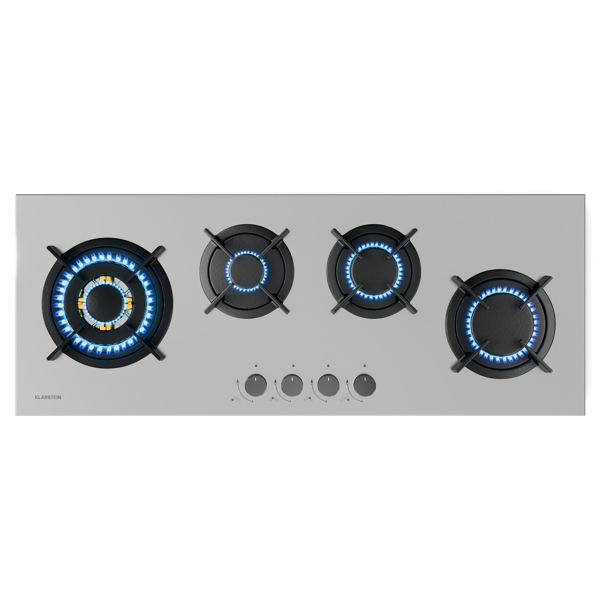 Mit vier hochwertigen Messing-Brennern (3,4 kW, 2 x 1,8 kW, 1,0 kW) bietet das platzsparende Kochfeld optimale Hitze. Das schlanke Design optimiert den Platz auf der Rückseite der Küchentheke, indem die Brenner nebeneinander platziert werden. Diese Anordnung bietet Bequemlichkeit beim Bewegen von Töpfen und Pfannen, wodurch das Risiko von Verbrennungen reduziert wird.