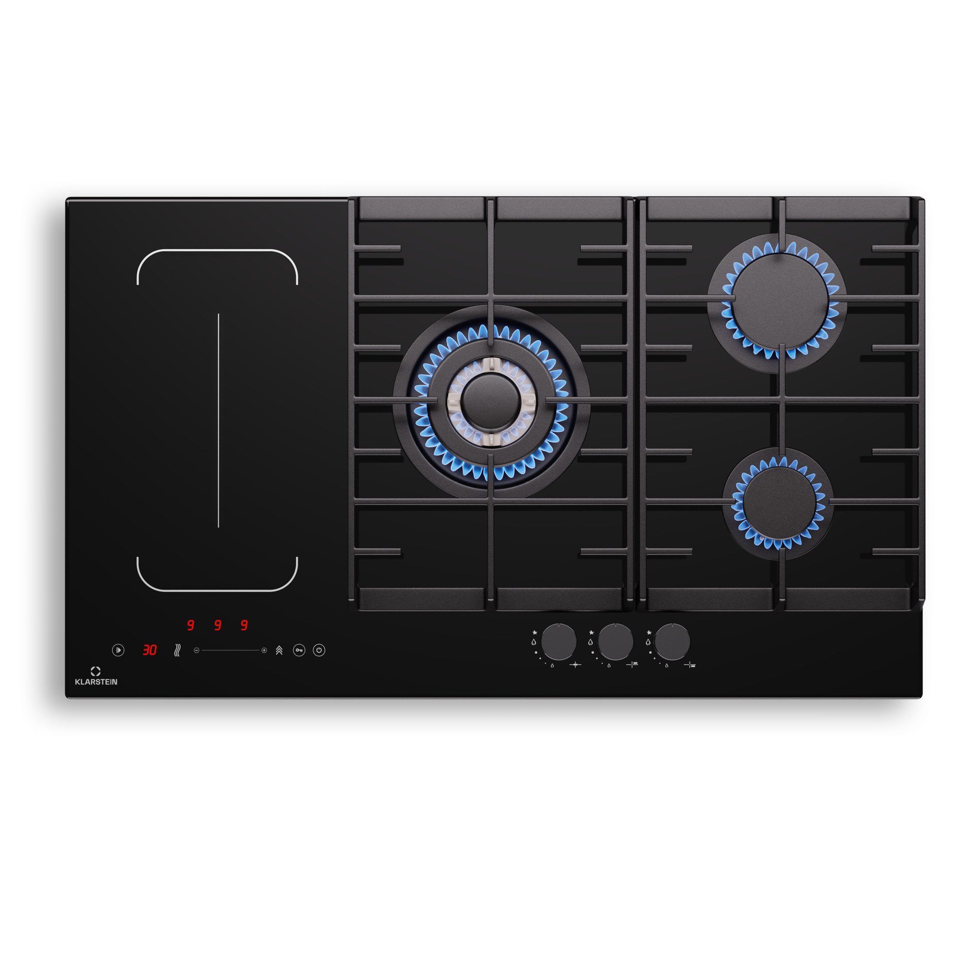 Mit der einzigartigen Kombination aus Gas- und Induktionskochen ermöglicht das Klarstein MultiChef 5 Induktions- und Gaskochfeld die perfekte Anpassung an jede Kochsituation. Die Gasbrenner bieten eine kraftvolle Leistung und ermöglichen eine präzise Temperaturregelung, ideal für das Anbraten von Fleisch oder das Kochen von Suppen. Auf der anderen Seite bietet das Induktionsfeld eine schnelle und effiziente Erwärmung, perfekt für empfindliche Saucen oder das Schmelzen von Schokolade.