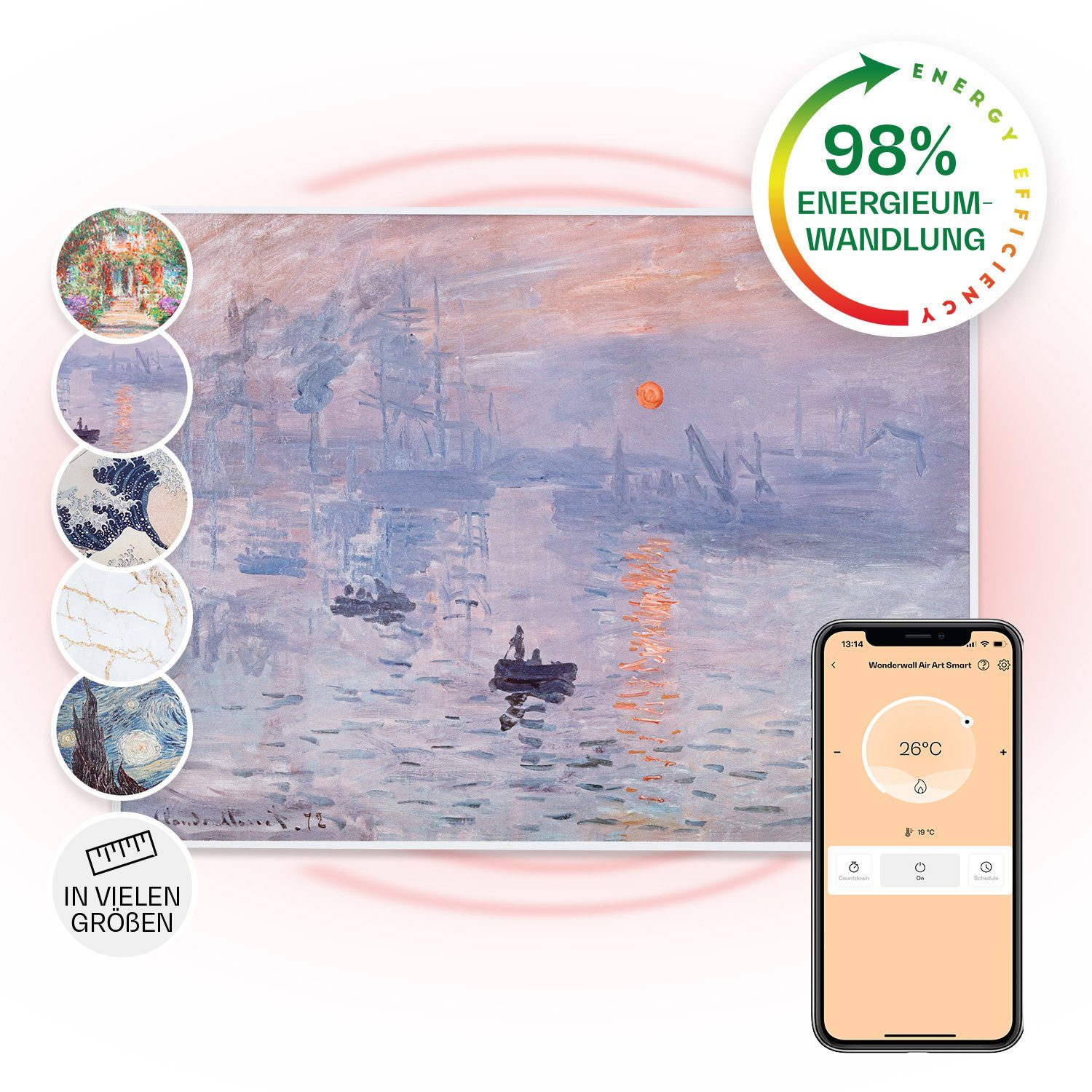 Die Klarstein Wonderwall Air Art Smart Infrarotheizung vereint hocheffiziente Heizleistung mit ansprechendem Design und innovativer Technik. Das 80 x 60 cm große Heizpanel kann direkt an die Wand gehängt werden, ist nur 5 cm hoch und kaum größer als ein gerahmtes Bild. Mit seiner starken 500 Watt Leistung und dank IR ComfortHeat verbreitet es für die menschliche Haut sehr angenehme Wärme, ohne sich in der Luft zu verlieren. Durch die Infrarot-Technologie ist das Heizpanel äußerst energieeffizient und umweltfreundlich, da ganze 98 % der Leistung in Wärmestrahlung umgewandelt werden. Smarte Funktionen zur Steuerung per App, Thermostat, Auto-Abschaltfunktion und Schutzklasse IP44 runden die Innovation gekonnt ab. Die Infrarotheizung mit Bild fügt sich dabei perfekt in jede Raumgestaltung ein.