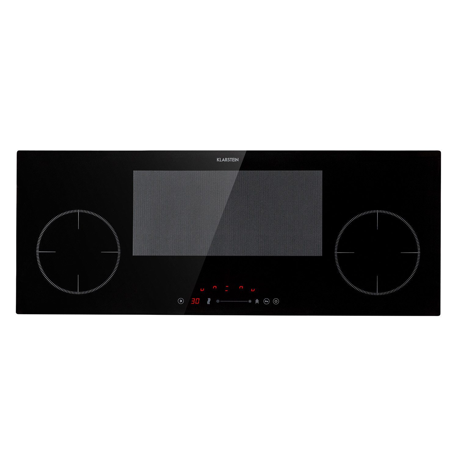 Vier Kochflächen für den Genuss bietet das Klarstein Delicatessa 90 Slim Einbaukochfeld bei einer Gesamtleistung von max. 7000 Watt, die sich mit 2 x 2000 Watt und 2 x 1500 Watt auf die einzelnen Kochflächen verteilen und die Inhalte von Töpfen und Pfannen in Spitzenzeiten zum Kochen bringen. Dabei vereinen sich per VarioHeating die beiden mittleren Kochzonen zu einer Flexzone: Mit maximaler Flexibilität passt diese sich dank Topferkennung an die Размер von Töpfen, Pfannen oder Kasserollen an und erhitzt so auch großes Kochgeschirr, das nicht auf ein einzelnes Kochfeld passt. Все Einzelfelder sowie das Flexfeld lassen sich separat in ihrer Leistung regeln und verfügen über eine ThermoBoost-Funktion, mit der die Leistung zum schnellen Erhitzen nochmals auf bis zu 2800 Watt gesteigert wird. Bedient wird das Klarstein Delicatessa 90 Slim Glaskeramik-Kochfeld unkompliziert mit einem integrierten SenseControl-Touch-Panel mit Touch-to-slide-Regler zur Leistungskontrolle und Digitaldisplay. So durchbrechen weder Knöpfe noch Regler die Oberfläche der Küchenzeile. Neben der Leistung kann für jedes Kochfeld ein bis zu 99-minütiger Timer programmiert werden, der entweder nach Ablauf der eingestellten Zeit die Kochplatte abschaltet oder ein akustisches Signal ertönen lässt.