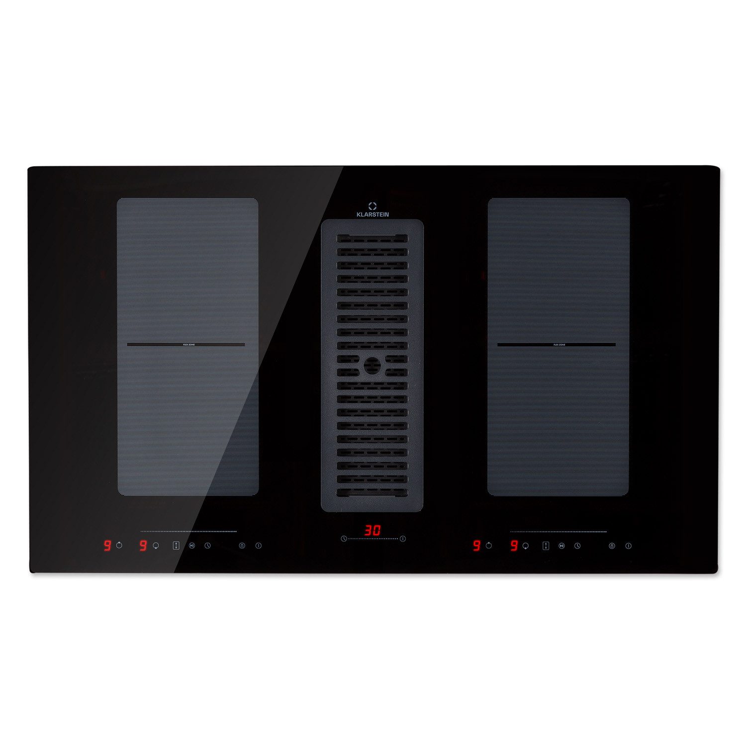 Das Klarstein Full House Induktionskochfeld präsentiert sich dabei mit vier Kochfeldern, links und rechts der integrierten DownAir Abzugshaube. Je zwei Kochfelder können dabei zu einer Flexzone kombiniert werden, um auch übergroßen Töpfen und Pfannen den notwendigen Platz zu geben. Jedes Kochfeld kann in 9 Stufen eingestellt werden und besitzt eine ThermoBoost-Funktion zum Steigern der Leistung für blitzschnelles Aufkochen. Topferkennung, Stop and Go Funktion mit ThermalRecall, Restwärmeerkennung, Kindersicherung und Warmhaltefunktion runden das Einsatzspektrum der Kochfläche perfekt ab.