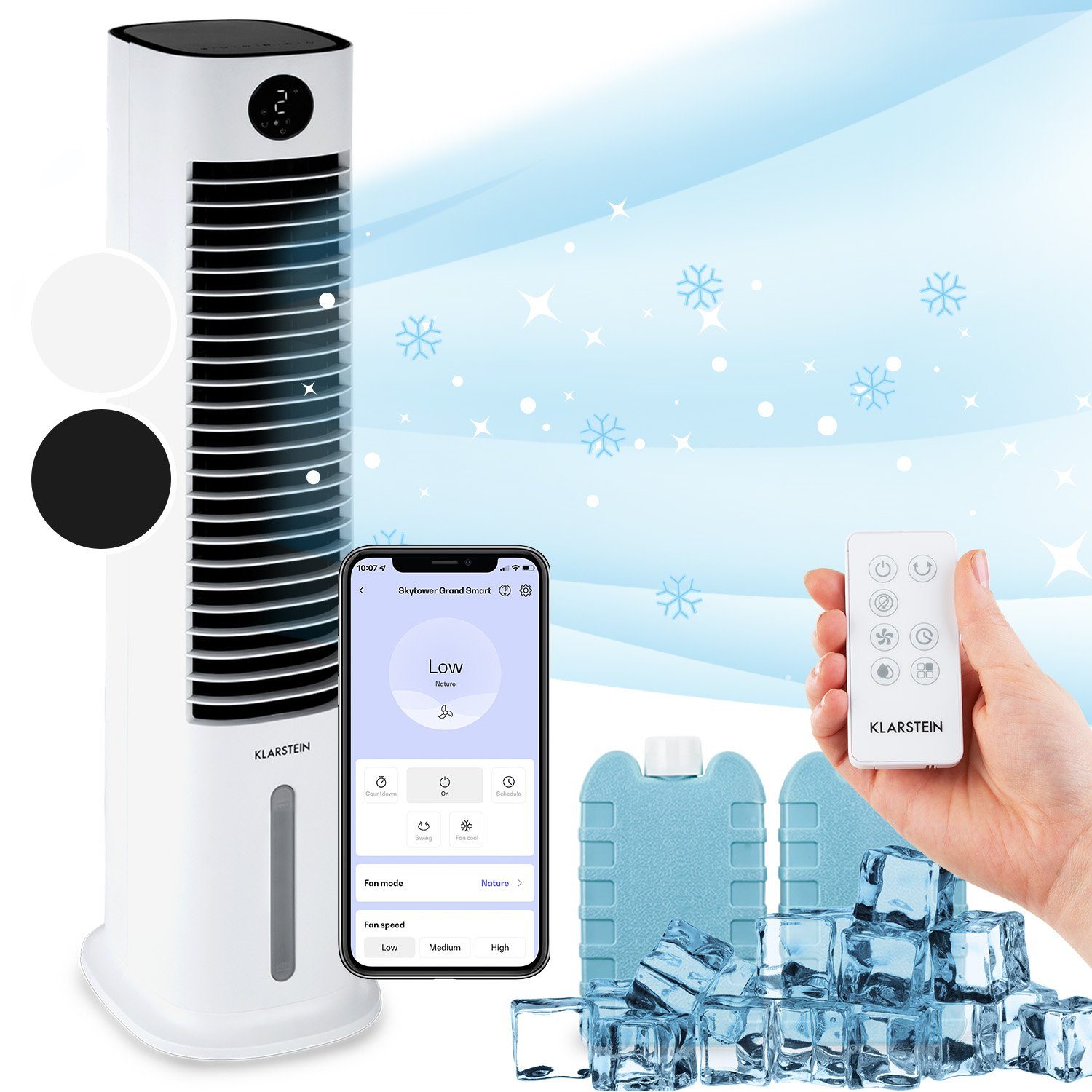 Der Klarstein Skytower Grand Smart 4-in-1-Luftkühler mit integrierter WLAN-Funktion und App-Control sorgt als Ventilator, Luftkühler, Luftreiniger und Luftbefeuchter für punktgenaue Erfrischung.