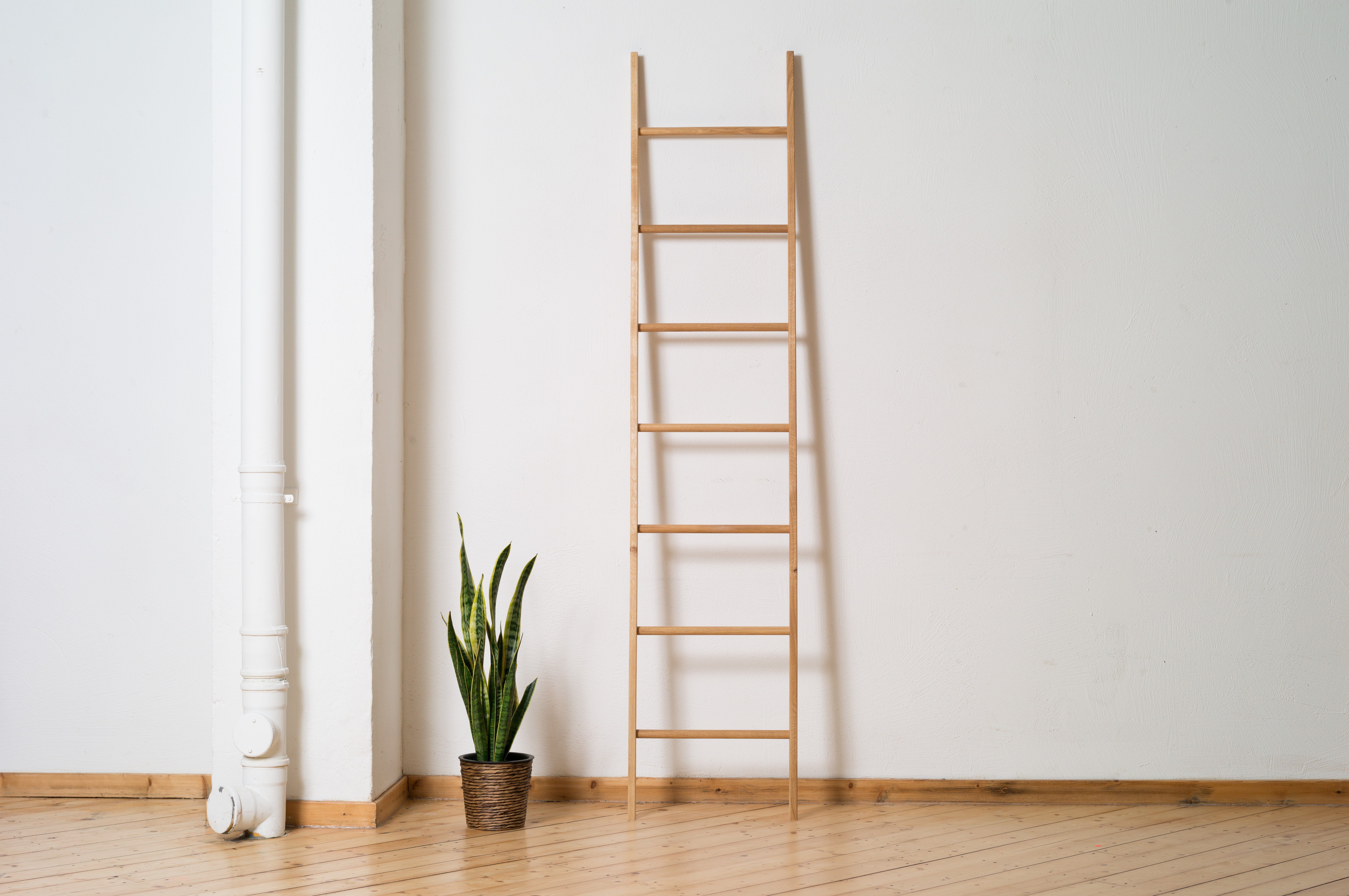 Hinweis Lieferumfang | 1x Holzleiter, 1x Edelstahl Kleiderhaken, Filzkleber und Gummifüße |