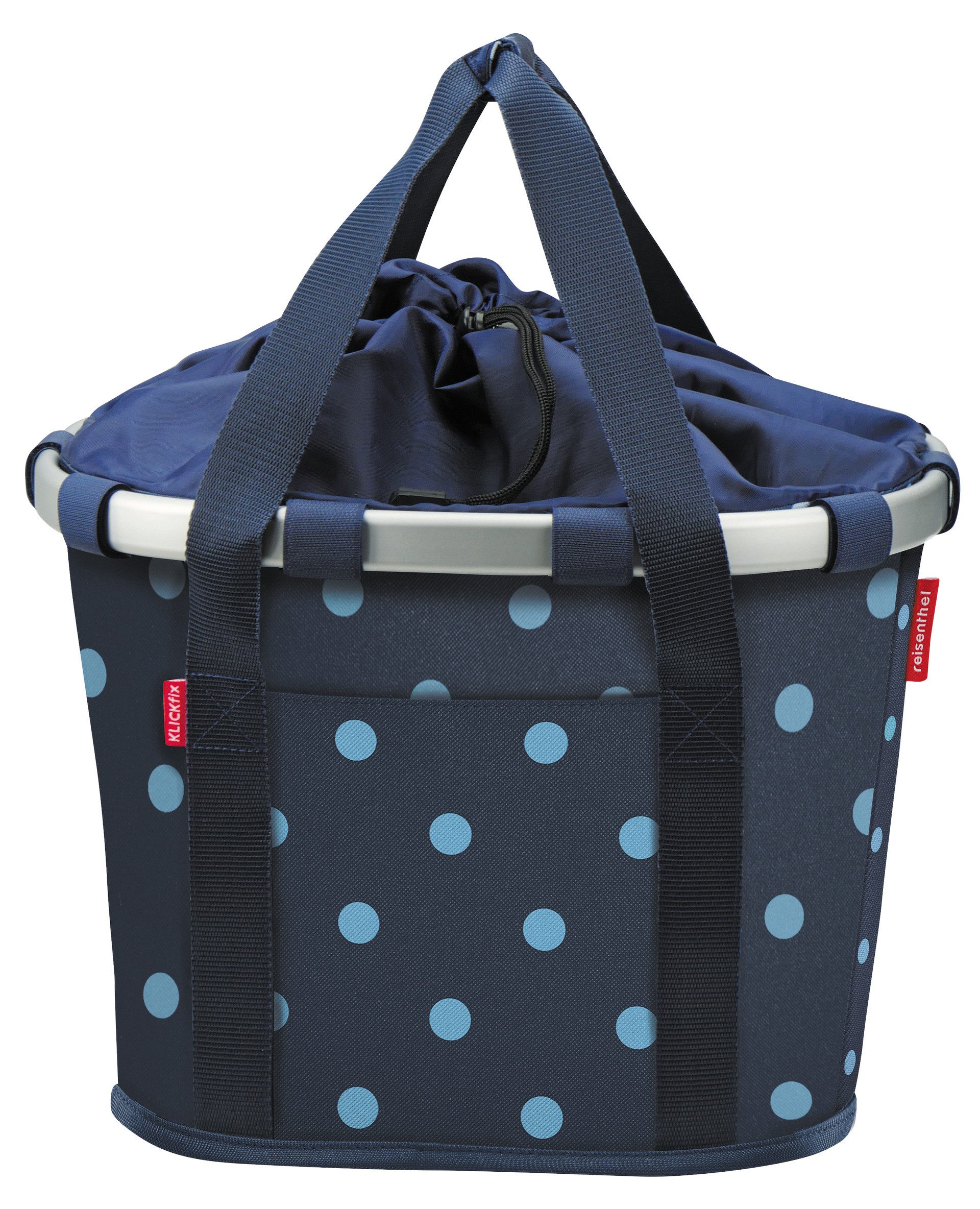 Ergebnis der Kooperation zweier starker Marken. Der schicke Textilkorb von Reisenthel mit dem markanten leichten Aluminiumrahmen – ausgerüstet mit Kupplung für den KLICKfix Lenkeradapter von RIXEN & KAUL. Zum Shoppen oder Ausflug findet hier jeder ein passendes Dekor zum Rad. Mit dem Kordelzug wird der Korb ruckzuck geschlossen. Handy Schlüssel & Co finden Ihren Platz in den praktischen Extrafächern und wenn der Korb mal länger verstaut wird, lässt er sich flach zusammenlegen.