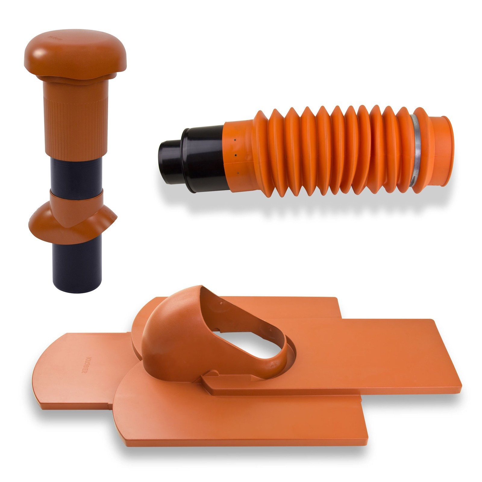 Set = Grundplatte Biberschwanz Pfanne + Belüfterrohr lang + Flex-Anschluss-Schlauch