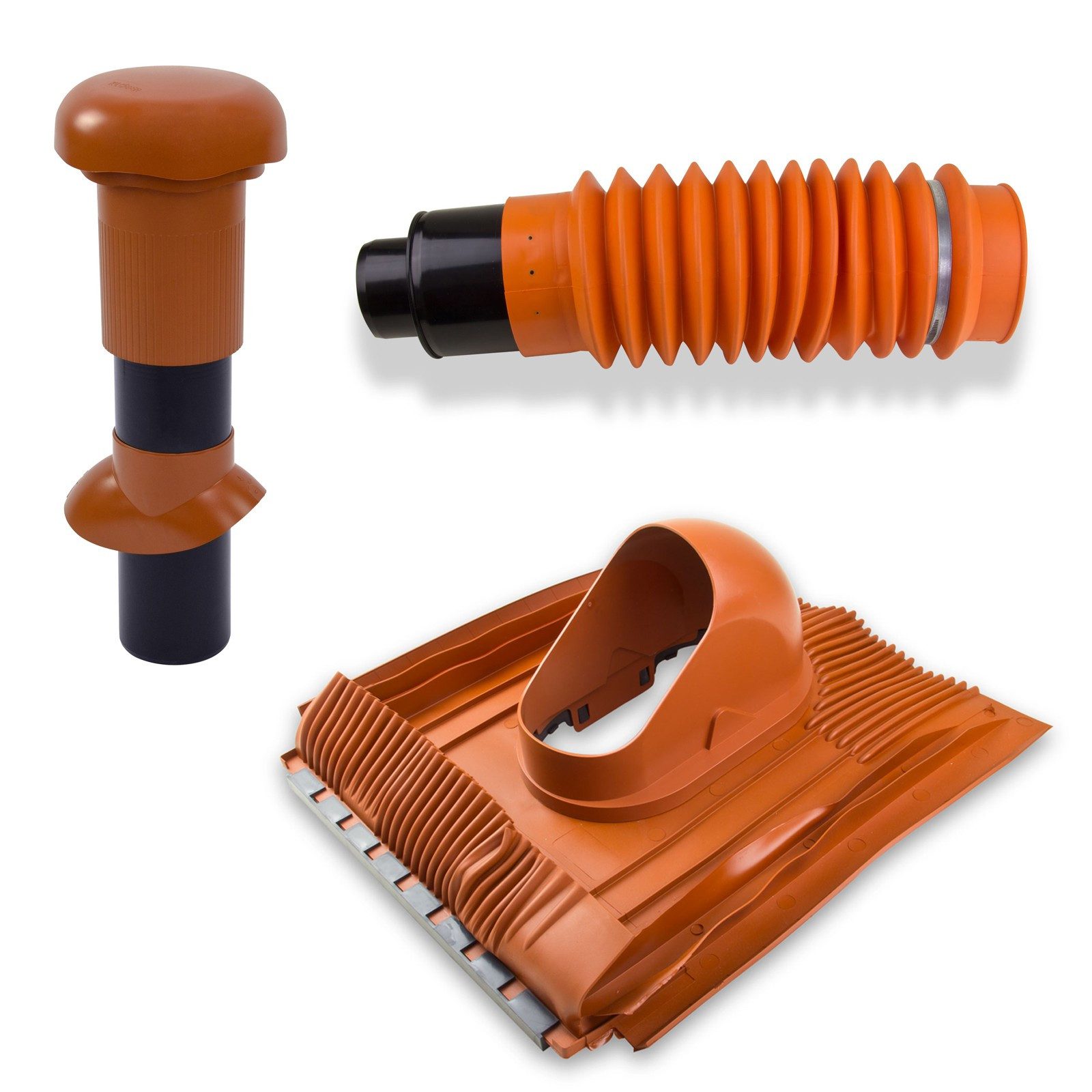 Set = Grundplatte Universal rot + Belüfterrohr lang rot + Flex-Anschluss-Schlauch