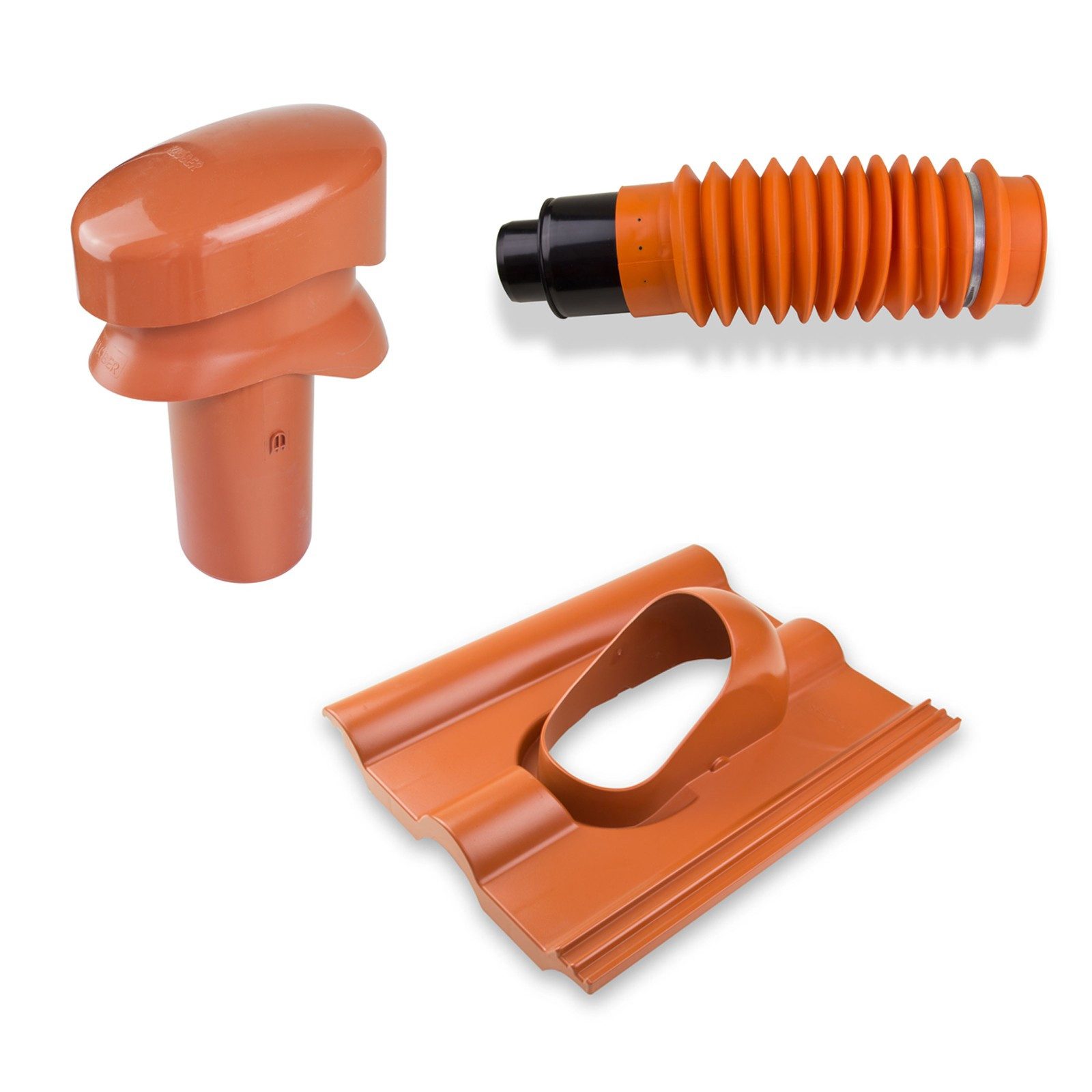 Lieferumfang: Grundplatte Rot + Belüfterrohr kurz Rot + Weich PVC Anschlußschlauch