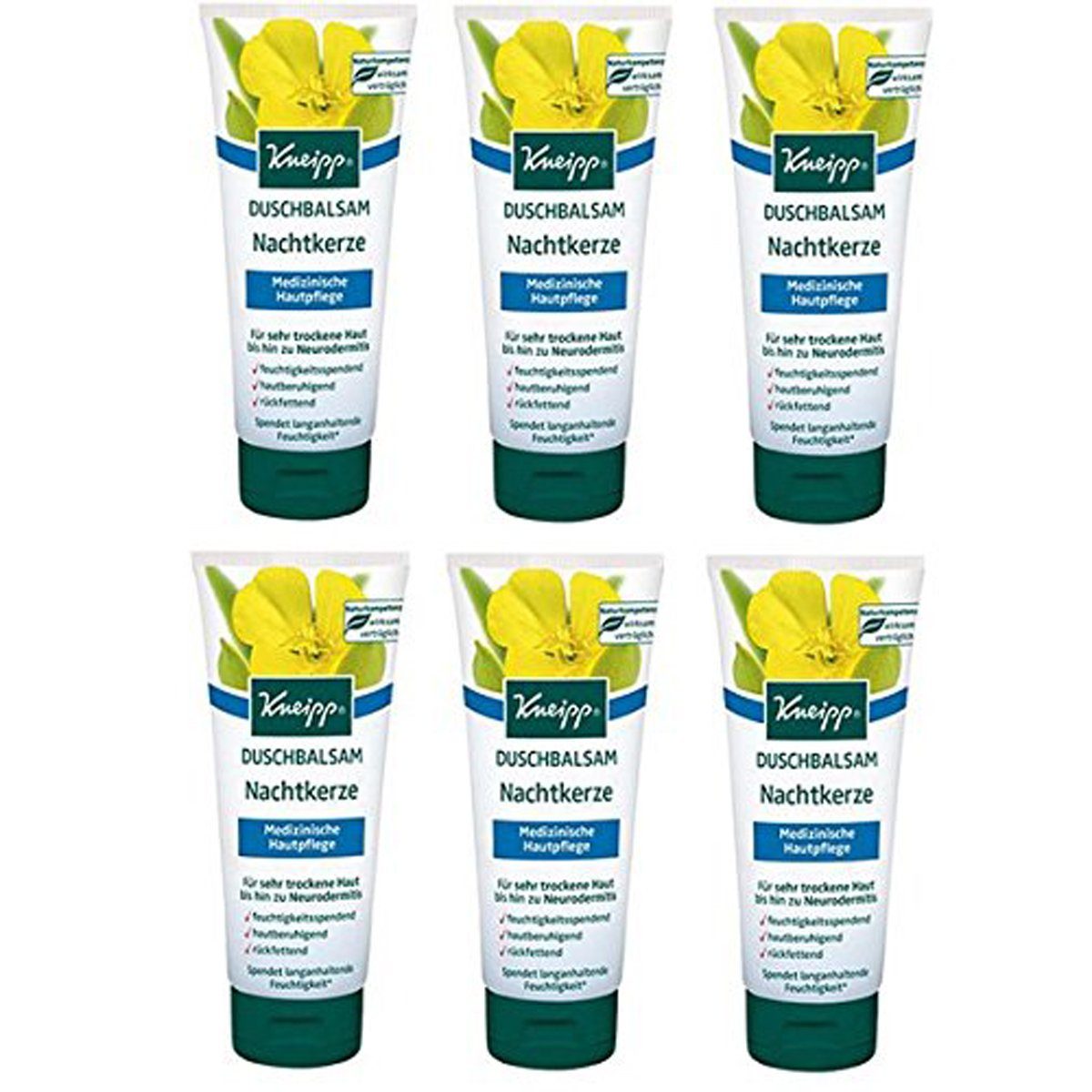 Kneipp Duschbalsam Nachtkerze. Der milde, intensiv rückfettende Duschbalsam ist die Basispflege zur täglichen Reinigung und Pflege von sehr trockener Haut bis hin zur Neurodermitis. Er besteht aus einer Kombination hochwertiger natürlicher Pflegewirkstoffe und Öle, die sich durch den hohen Gehalt an essenziellen Fettsäuren auszeichnen. Das Nachtkerzenöl, ist sehr gut verträgliches Mandelöl, hautpflegendes Allantoin und reichhaltige Sheabutter schützen die Haut lang anhaltend vor Austrocknung.