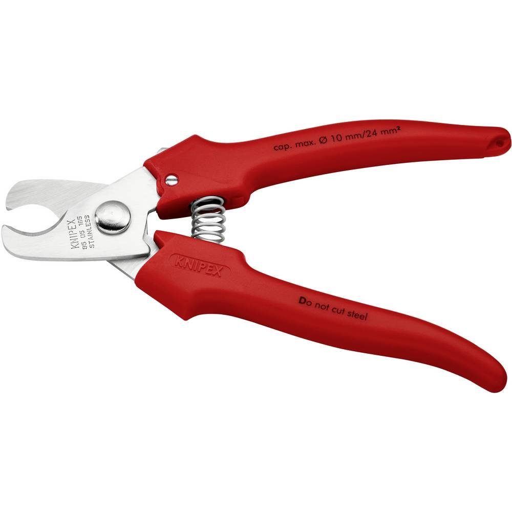 Eigenschaften | Geeignet für (Abisoliertechnik): Alu- und Kupferkabel, ein- und mehrdrähtig · Gewicht: 111 g · Material: Chirurgenstahl · Material-Eigenschaft: gehärtet, poliert · Produktabmessung, Длина: 165 mm · Schneidwert-Durchmesser (max.): 10 mm · Schneidwert-Querschnitt (max.): 24 mm² · Schneidwert-Querschnitt AWG (max.): 3 |