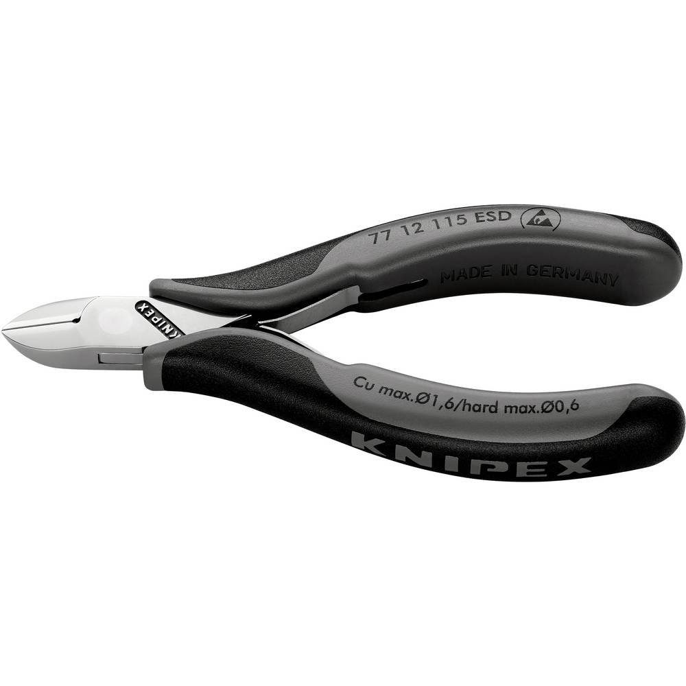 Runder Kopf, mit Facette und Drahtklemme - kein unkontrolliertes Wegspringen der Drahtabschnitte. Schneidenhärte ca. 62 HRC. Präzisionszangen für feinste Schneidarbeiten, z. B. in Elektronik und Feinmechanik. Griffe elektrisch ableitend – dissipativ. Durchgestecktes Präzisionsgelenk. Reibungsarme Doppelfeder für ein sanftes und gleichmäßiges Öffnen. Die Spiegelpolitur bietet in Verbindung mit einem feinen Ölfilm einen guten Rostschutz – keine Störungen im Schaltkreis durch abblätternde Chromteile. Schneiden zusätzlich induktiv gehärtet. Griffe mit zweifarbigen Mehrkomponenten-Griffhüllen schwarz/grau. Schneidkopf: Spezial-Werkzeugstahl in Sondergüte, geschmiedet, ölgehärtet.