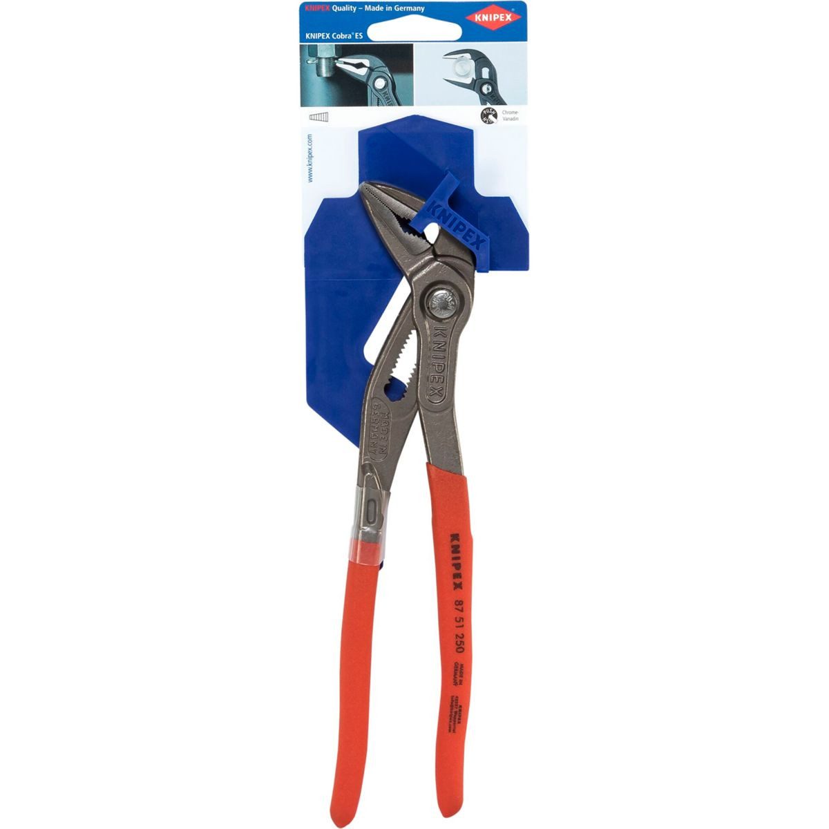 Die Knipex Cobra ES Wasserpumpenzange ist eine besonders schlanke Zange für enge Arbeitsbereiche. Mit ihren langen, spitzen Backen greift sie präzise und sicher, selbst bei flachen Materialien. Dank der selbstklemmenden Funktion bleibt sie fest am Werkstück und ermöglicht kraftsparendes Arbeiten.
