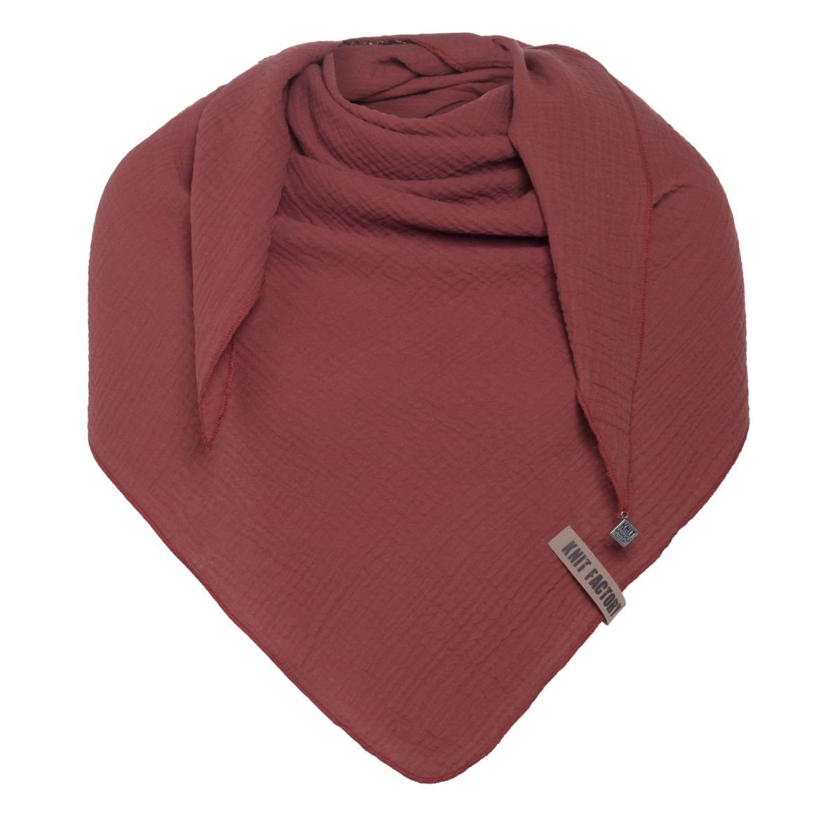 Knit Factory Dreieckstuch Liv in der Farbe Stone Red ist ein trendiger, moderner Damenschal für Frühling und Sommer. Dank der feinen, gewebten Baumwolle fällt das Tuch angenehm luftig und weich um den Hals. Durch die Dreiecksform kann das Tuch auf vielfältige Weise stilvoll und modisch getragen werden. Mit diesem schönen, großen Dreieckstuch kommen Sie gut durch den Tag. Das unverwechselbare Leder-Label von Knit Factory verleiht dem Liv Schal ein besonderes Detail. Erhältlich in erfrischenden, sommerlichen Farben, wie dieses Stone Red.