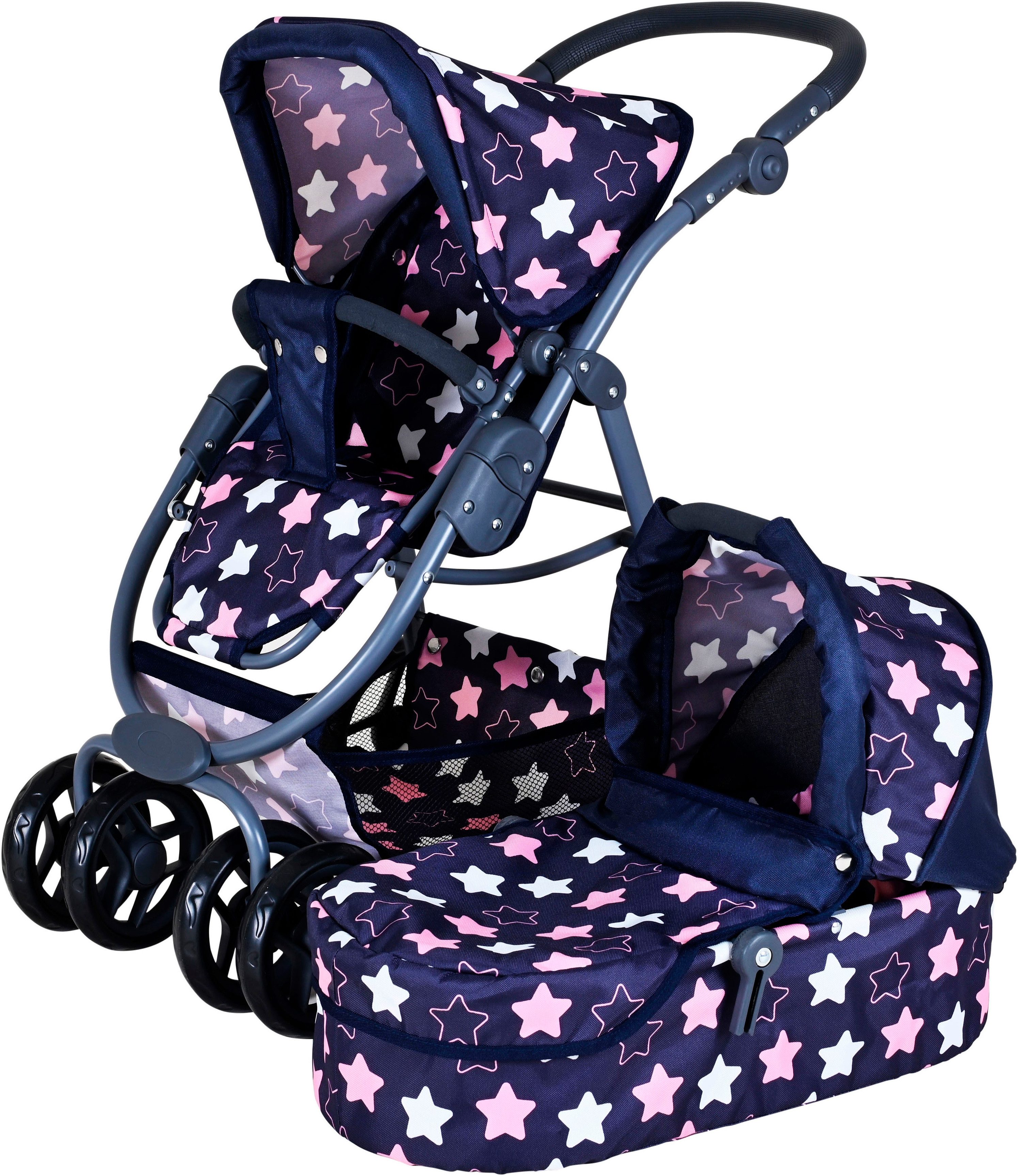 Ausstattung | Doppel-Schwenkräder, Baby-Wannenaufsatz (B/T/H: ca. 31/53/40 cm) , schwenkbare Vorderräder, verstellbares Verdeck, höhenverstellbarer Schiebegriff mit Softummantelung (ca. 45 - 80 cm), Einkaufsnetz, Sicherheitsbügel, Anschnallgurt |