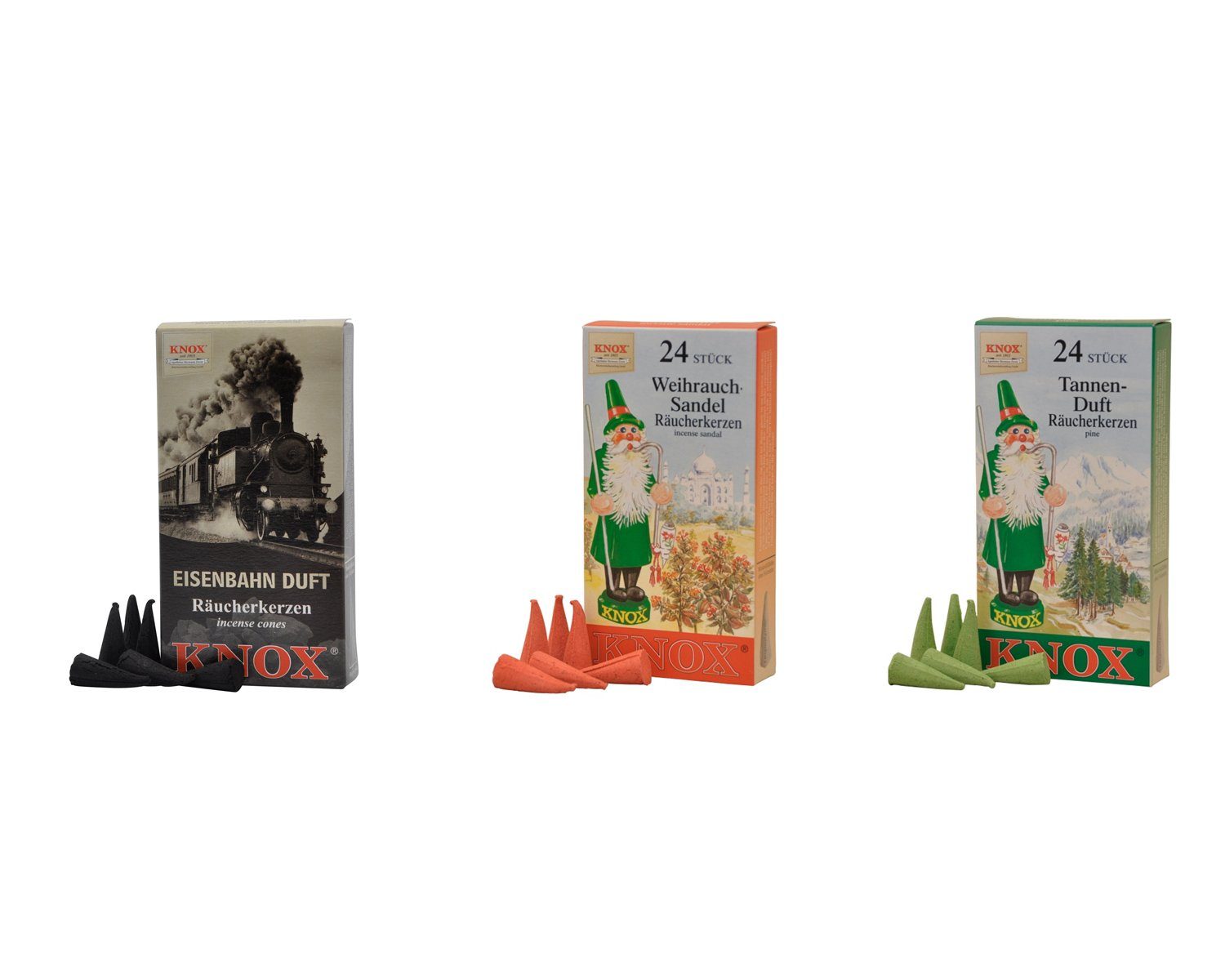 Die Geschichte der Firma KNOX Räucherkerzen reicht bis ins Jahr 1865 zurück. Anfänglich noch in der eigenen Apotheke produzierend, bezog Herrmann Zwetz im Jahre 1880 die erste Räuchermittelfabrik in Schleiz. Der Markenname KNOX wurde 1958 von Erich Koch ins Leben gerufen und steht seitdem für allerhöchste Qualität rund um das Gebiet der Räucherkerzen. Bis heute werden die Räucherkerzen nach traditionellen Rezepten in verschiedensten Duftrichtungen hergestellt. Von traditionellen Düften wie Weihrauch und Sandel bis hin zu exotischen Düften wie Opium und Tabak ist alles dabei, was das Räucherherz begehrt.