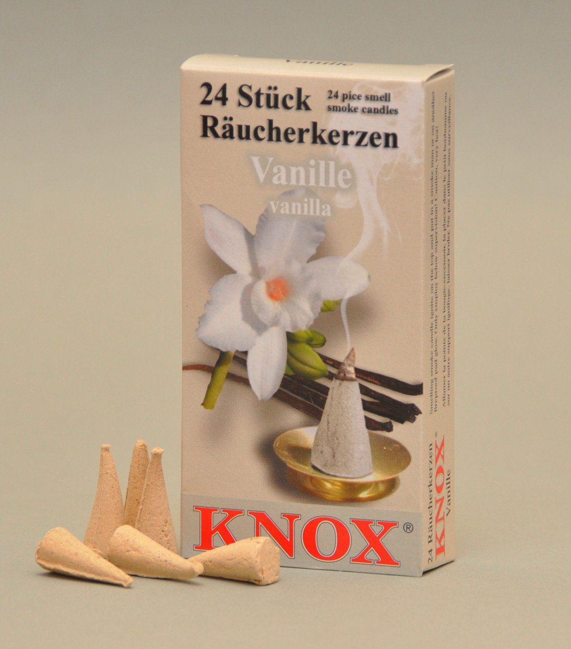 Produktdetails: Duft: Vanille | Menge: 24 Räucherkerzen | Größe: M | für Räucherfiguren ab 18 cm |