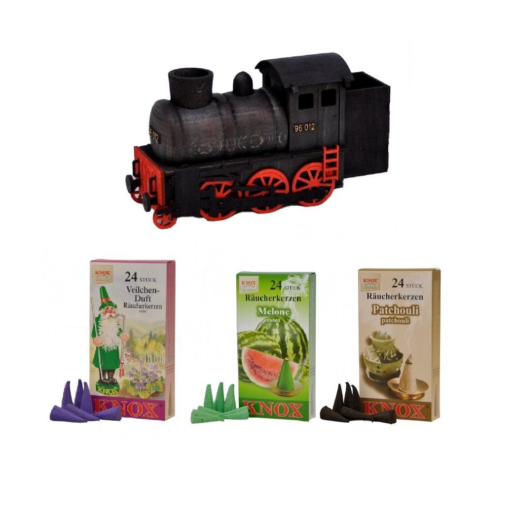 Für Eisenbahnfans ist die Kombination aus Eisenbahn-Räucherkerzen und einer Eisenbahn aus Holz das perfekte Geschenk.