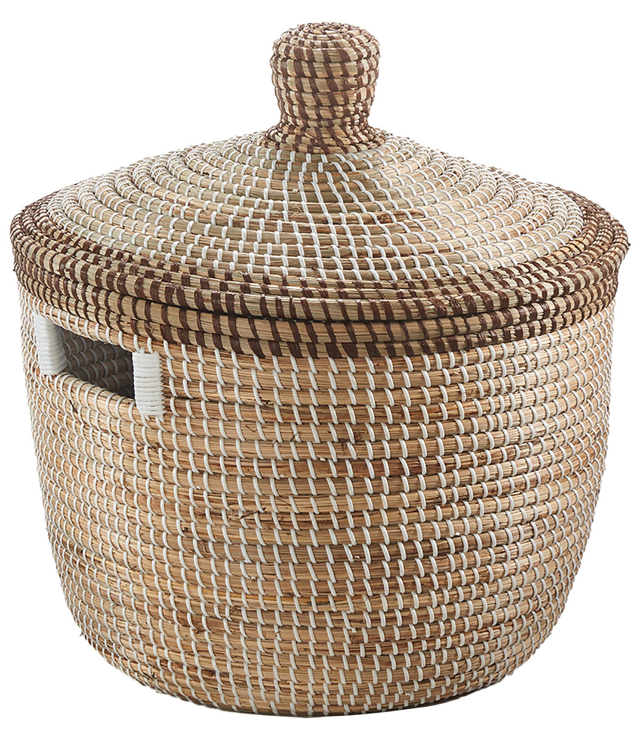 Materialzusammensetzung | 90 % Seegras, 8 % Kunststoff, 2 % Bast |