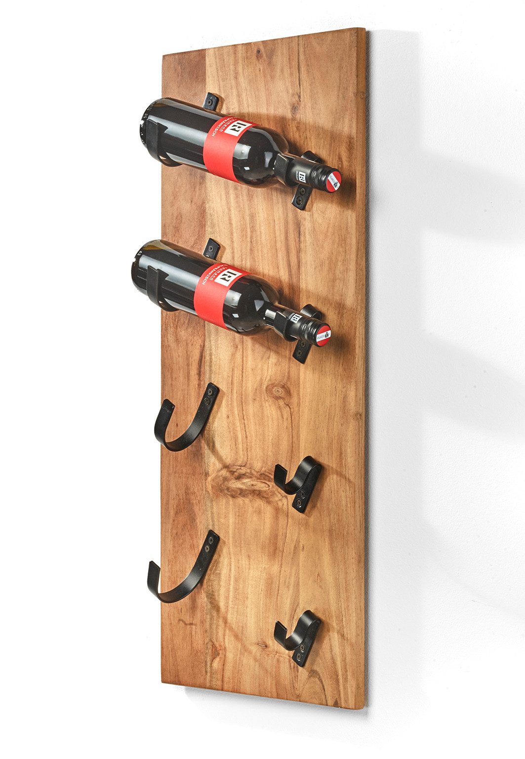 Lieferumfang | Wandregal aus Holz mit Flaschenhaltern aus Metall |