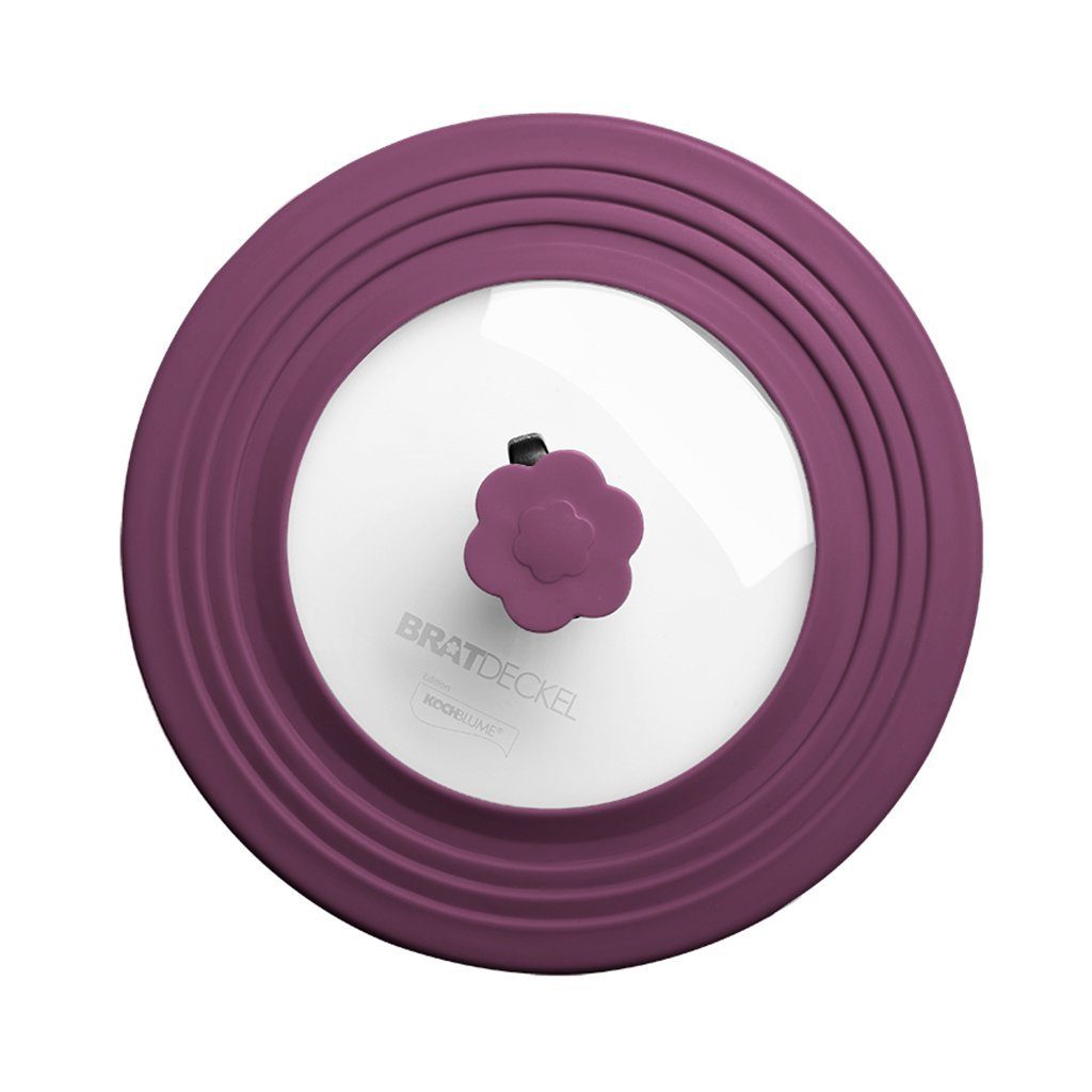 Bratdeckel mit Automatikventil für knusprige Ergebnisse Automatikventil lässt Feuchtigkeit beim Braten entweichen Idealer Spritzschutz für verschiedene Pfannengrößen von 22-28cm Lebensmittelechtes Silikon, BPA-frei Hitzebeständig bis 180°C Spülmaschinenfest