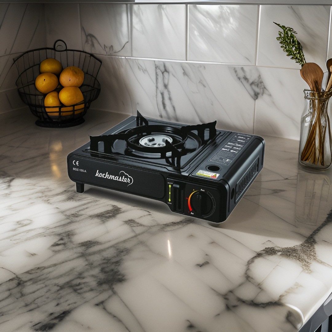Entdecken Sie den Kochmaster Tragbaren Gasofen mit Koffer – die ideale Lösung für schnelle und unkomplizierte Mahlzeiten unterwegs. Der einfache und sichere Piezo-Zünder sowie der praktische Schalenhalter machen ihn zum perfekten Begleiter für Campingausflüge und Outdoor-Aktivitäten, aber auch für den Gebrauch zu Hause. Dieser leichte und kompakte Gaskocher ist im mitgelieferten Koffer einfach transportierbar und eignet sich ideal für Reisen, Urlaub, Camping, Wandern oder das nächste Picknick – sei es zum Kochen, Zubereiten von Kaffee und Tee oder sogar für Glühwein im Winter. Die hochwertigen Materialien und die langlebige Technologie gewährleisten eine zuverlässige Funktion über viele Jahre hinweg. Clevere Features wie die zuverlässige Piezo-Zündung, der mitgelieferte Windschutz für bis zu 30% Gasersparnis und die saubere blaue Flamme machen diesen Kocher zum perfekten Outdoorbegleiter. Technische Daten: Piezo-Zündung für einfaches und sicheres Anzünden Mitgelieferter Windschutz für bis zu 30% Gasersparnis Leicht und kompakt, ideal für unterwegs Praktischer Schalenhalter für stabilen Halt während des Kochens Kommt mit tragbarem Koffer für einfachen Transport Genießen Sie köstliche Mahlzeiten unter freiem Himmel mit dem Kochmaster Tragbaren Campingkocher – leicht, kompakt und bereit für jedes Abenteuer! Bitte beachten Sie, dass keine Gaskartusche im Lieferumfang enthalten ist.