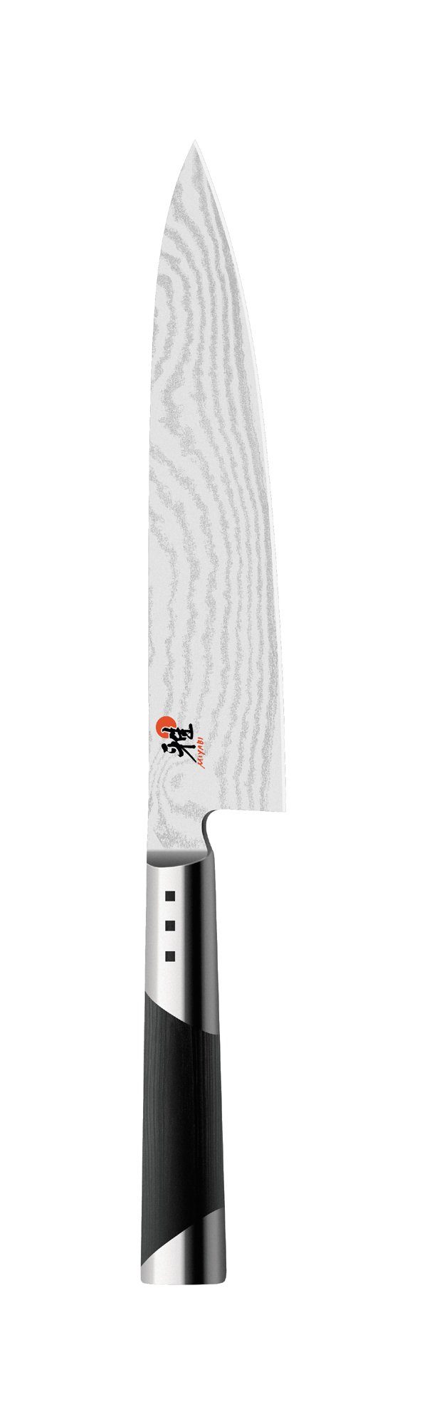 MIYABI 7000 D Gyutoh 20 cm, Micarta Das Gyutoh für professionelle Köch*innen. CRYODUR eisgehärtete Klinge Ergonomischer Griff für ideale Balance Korrosionsbeständig Lange Haltbarkeit Beschreibung Wer Messer nicht nur benutzen, sondern das Schneiden wahrlich zelebrieren möchte, findet in diesem Schneidwerkzeug eine Kombination aus hochwertiger Verarbeitung und kunstvoller Ästhetik, die höchsten Ansprüchen gerecht wird. Das Gyutoh ist ein japanisches Messer, das traditionell für Fleisch verwendet wird, das aber ebenso in der europäischen Küche genutzt werden kann, zum Beispiel zum Schneiden von Gemüse und Fisch. Der fugenlos verarbeitete Griff aus Micarta ist ergonomisch geformt, sodass das Messer besonders angenehm in der Hand liegt. Die Klinge wurde mit dem Honbazuke Abzug geschäft und poliert. Bei diesem klassisch japanischen Verfahren wird die Klinge in drei Schritten geschärft und poliert, wodurch die Schneide durch ihre feine Oberfläche eine extreme Schärfe erhält. Die CRYODUR Klinge wurde in einem speziellen Härteverfahren für Mehrlagenstahl gehärtet, das Ergebnis: außerordentliche Härte und Schneidhaltigkeit bei hoher Flexibilität. Das Messer wurde in Seki gefertigt, einem traditionellen japanischen Schmiedezentrum. Es vereint japanische Schönheit und Schärfe. Klinge hergestellt aus der Stahlsorte. CMV60 Klingenlänge: 20 cm. Robuste und haltbare Klinge für leichtes Schneiden. Ergonomischer Griff aus Micarta: Für ermüdungsfreies und sicheres Arbeiten mit dem Messer. Fugenloser Übergang zwischen Griff und Klinge. Poliert mit Honbazuke Abzug. Eigenschaften Material: CMV60 Griffart: Steck-Erl Schleifart: Glattschliff Veredelung: Honbazuke Abzug Herstellungsart: geschweißt Lieferumfang: 1 Klingenhärte: 60-62 HRC Grifffarbe: Schwarz Griffmaterial: Micarta Abmessungen Gewicht netto: 0,23 kg Produktlänge: 34,10 cm Produktbreite: 2,30 cm Produkthöhe: 4,90 cm Klingenlänge: 20,00 cm Grifflänge: 14,00 cm Handle width: 2,30 cm Klingenbreite: 0,20 cm Klingenstärke: 0,20 cm