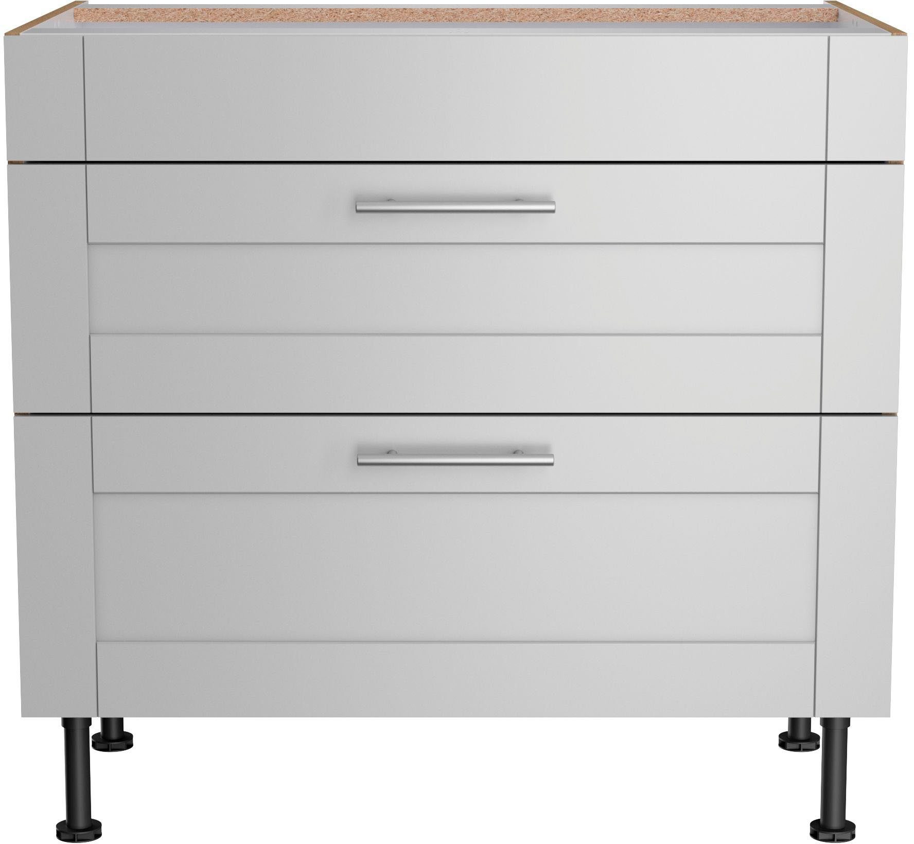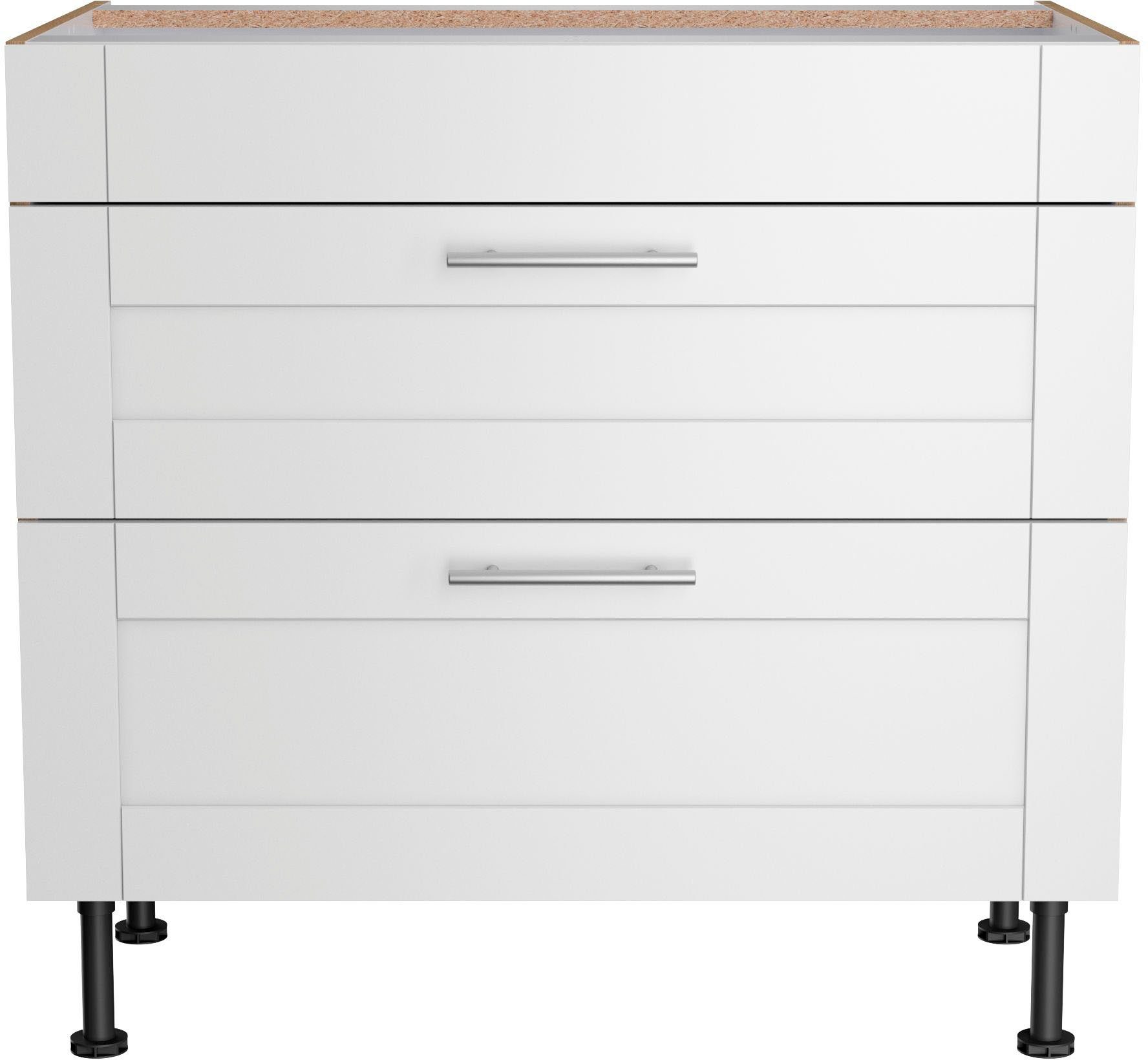 Mit diesem Kochfeldumbauschrank »KS-Ahus« von KOCHSTATION ist das Kochfeld optimal auf die anderen Elemente deiner Küche abgestimmt. Die Schubladen lassen sich komplett ausziehen und bieten dir weitere Unterbringungsmöglichkeiten. Die Füße sind besonders praktisch, da sie höhenverstellbar sind. So lassen sich mögliche Unebenheiten des Bodens ausgleichen, damit der Schrank gerade steht.
