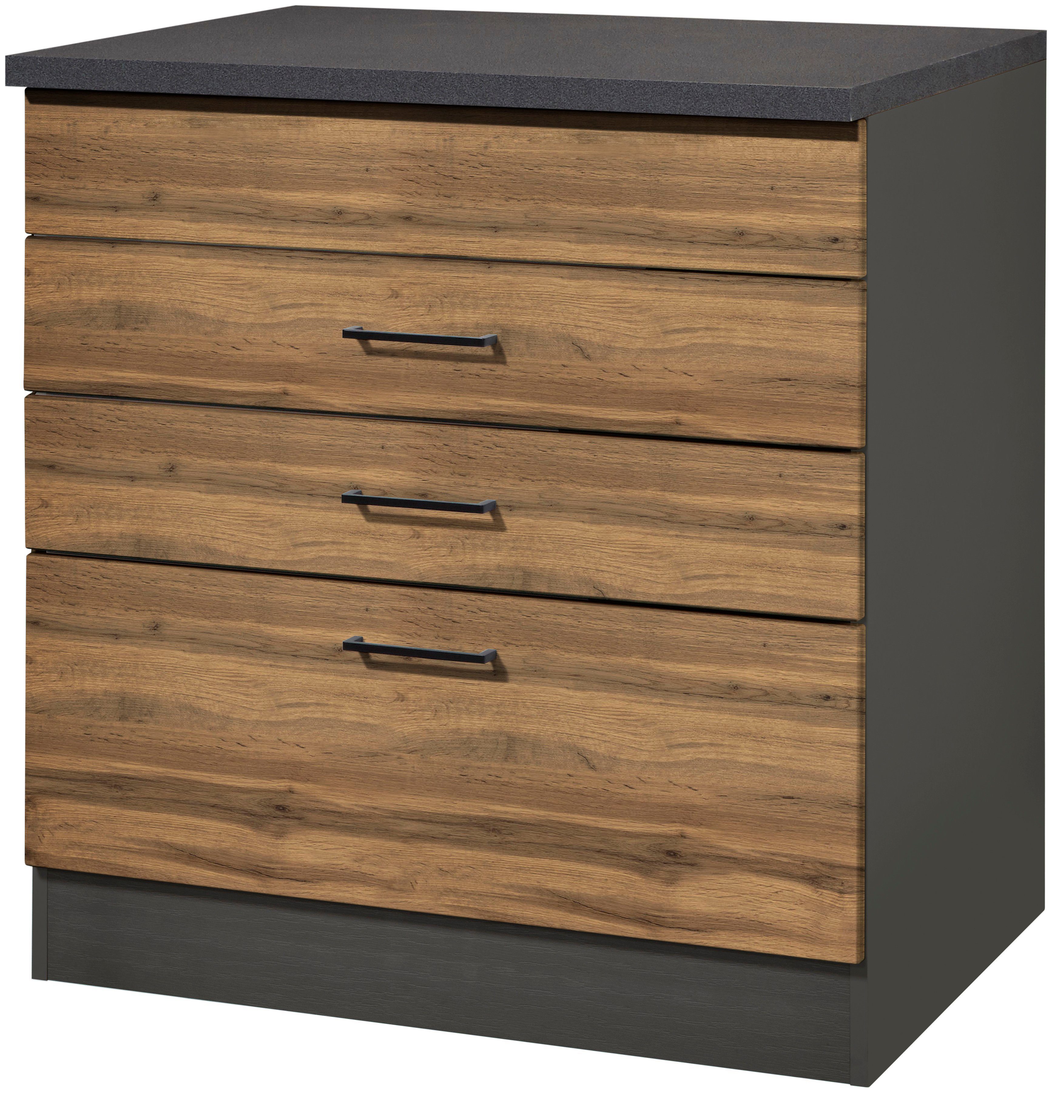 Mit diesem Kochfeldumbauschrank »KS-Trier« von KOCHSTATION integrierst du das Kochfeld stilvoll in deine Einbauküche. Der Schrank besteht zu einem Großteil aus stabilem Holzwerkstoff und überzeugt dadurch mit solider Robustheit. Die praktischen Bügelgriffe aus Metall sind langlebig und unterstreichen den Stil. Das Herstellungsland Deutschland ist für seine gute Qualität bekannt.
