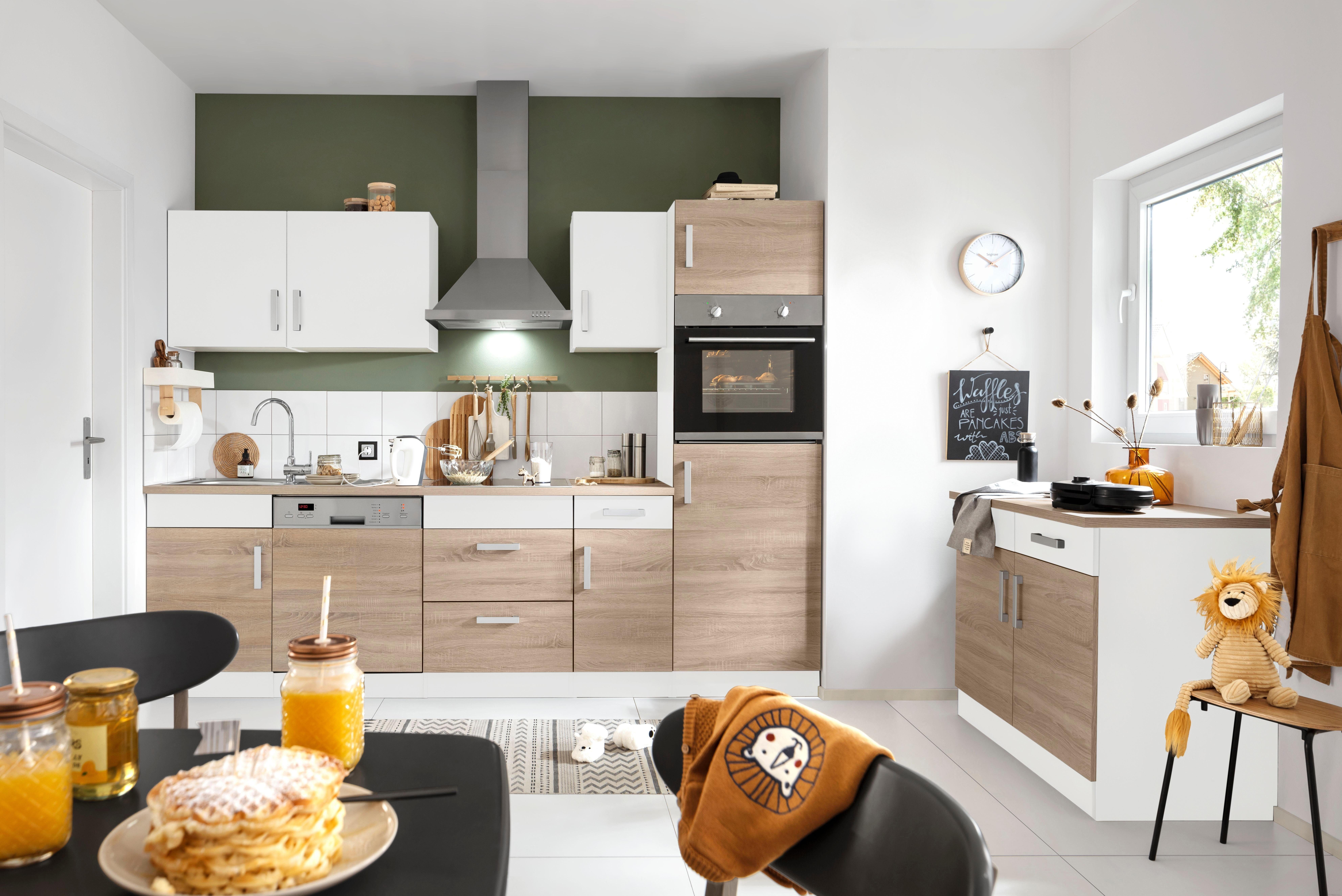 Informationen Umbauschrank 2 | Auch als Kühlschrankumbau nutzbar Nischenmaß Kühlschrank (B/T/H): 56/55/88 cm Zusätzlicher Stauraum über dem Backofen |