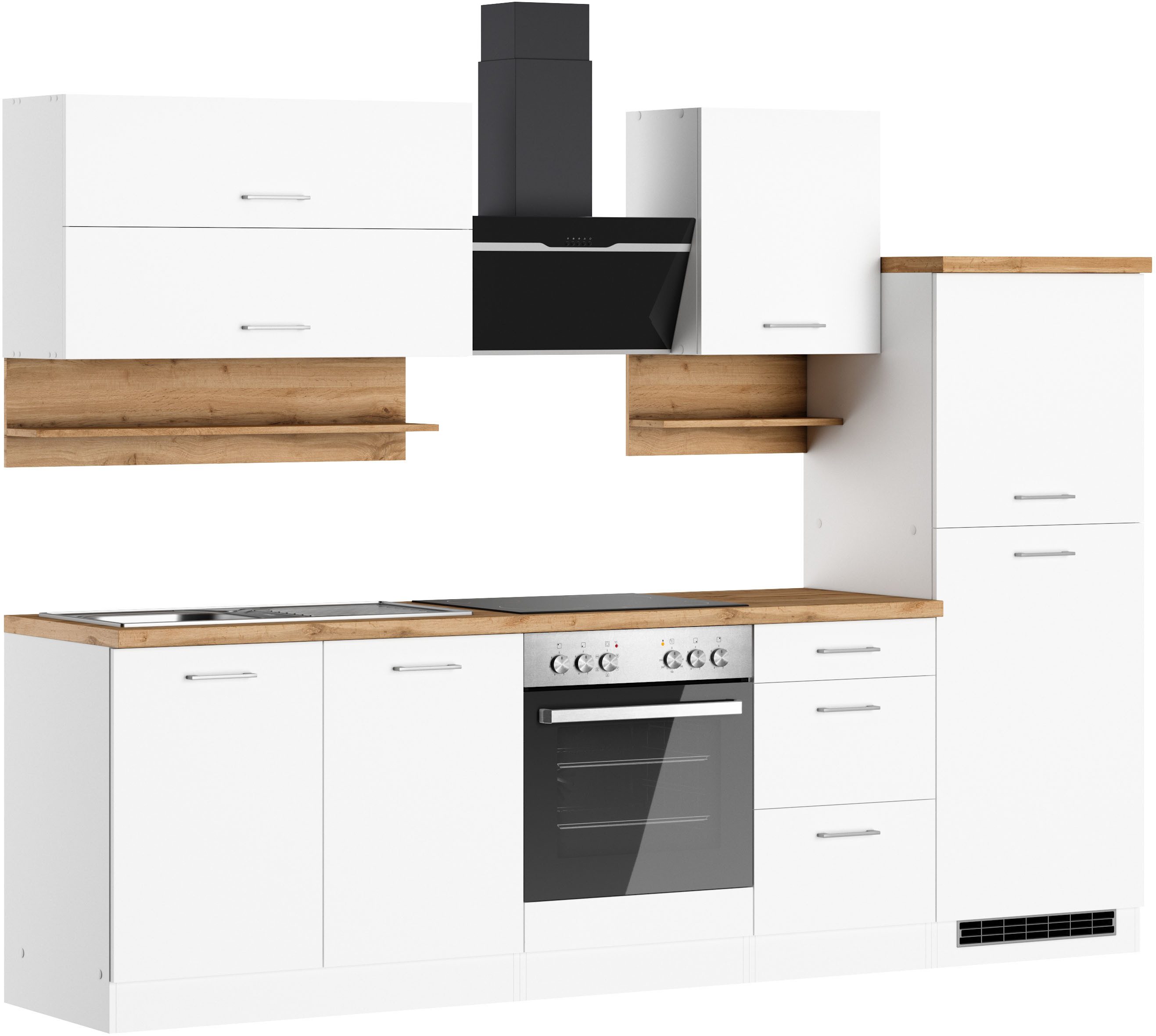 KOCHSTATION Küchenzeile KS-Paris, mit E-Geräten, Breite 300 cm, mit großer Kühl-Gefrierkombination