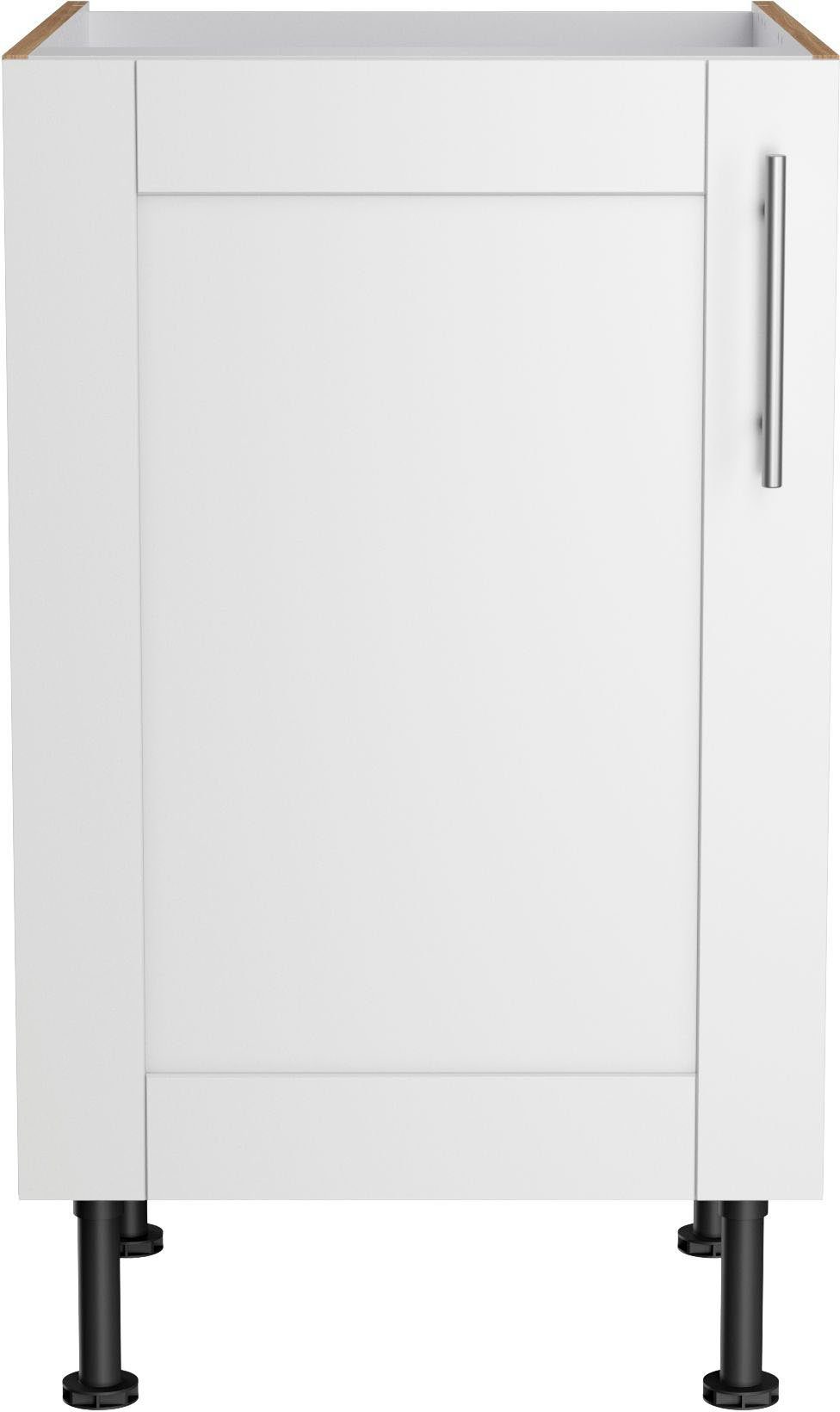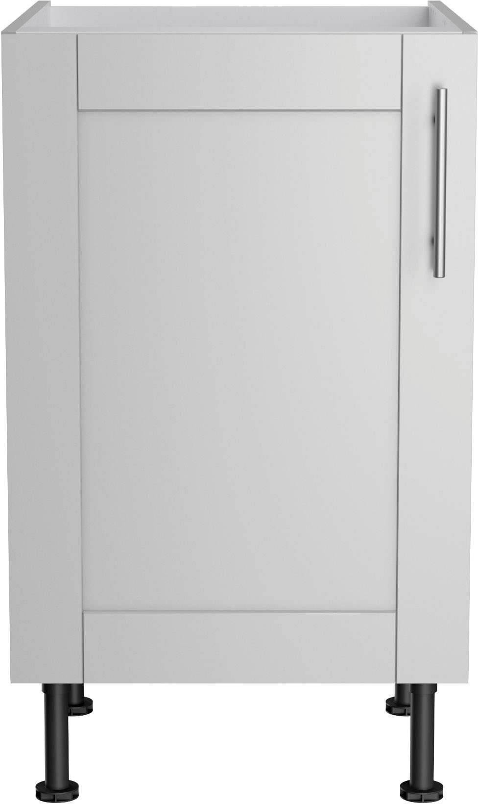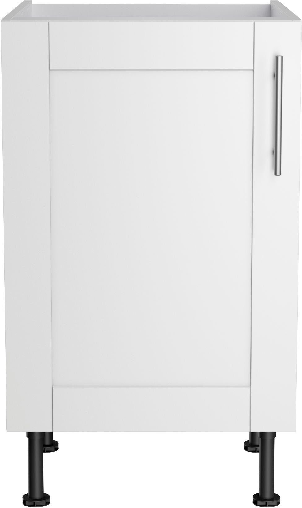 Die handlichen Stangengriffe aus Metall sind stabil und nutzen sich daher nicht so schnell ab. Er wurde in Deutschland gefertigt und steht daher für hohe Qualitätsstandards. Der Spülenschrank lässt sich dank der dazugehörigen Anleitung unkompliziert montieren. Lange Freude durch die richtige Pflege: Wie der Schrank am besten gepflegt werden soll, steht auf dem beiliegenden Produkt- und Materialpass.