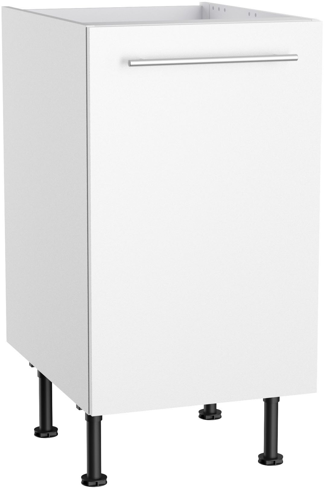 Die Öffnungsrichtung kannst du nach Belieben festlegen, da der Türanschlag sowohl rechts als auch links angebracht werden kann. Die Füße sind besonders praktisch, da sie höhenverstellbar sind. So lassen sich mögliche Unebenheiten des Bodens ausgleichen, damit der Schrank gerade steht.